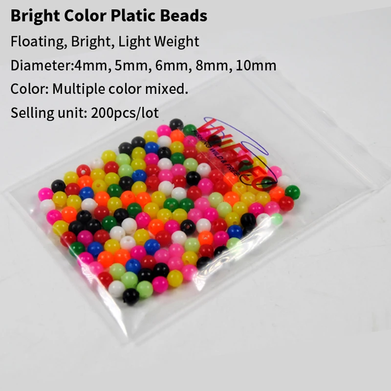Wifreo 200 Uds. De cuentas de plástico para aparejos de pesca mixtos de varios colores para señuelos Spinners Sabiki DIY 4mm 5mm 6mm 10mm
