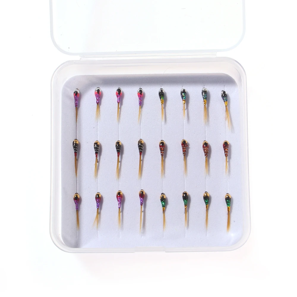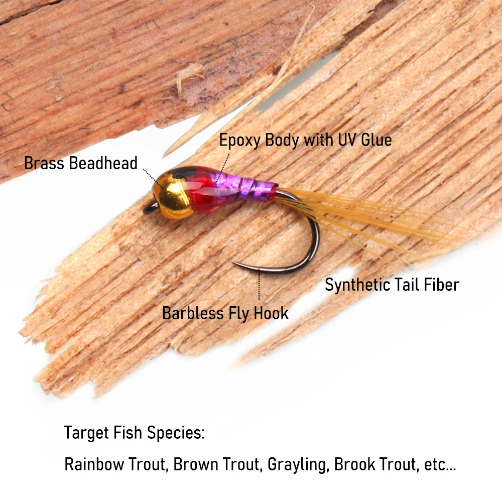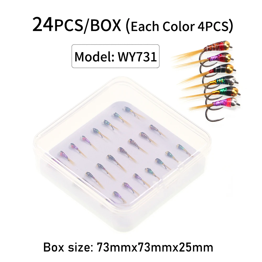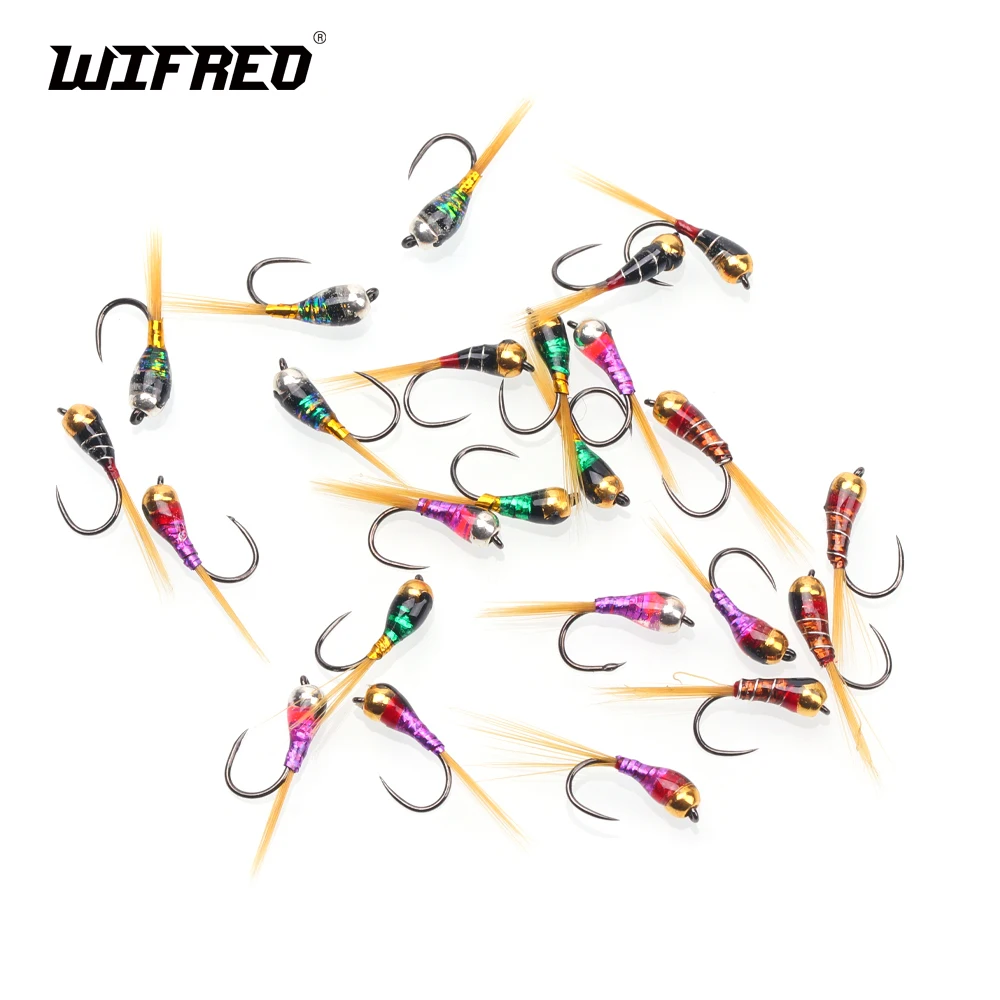 Wifreo 24PCS/Box #18 Brass Beadhead Epoxy Perdigon Nymphs Wet Fly Euro Nymph Grayling Trout Bass Fishing Lure Baits 6 Colors