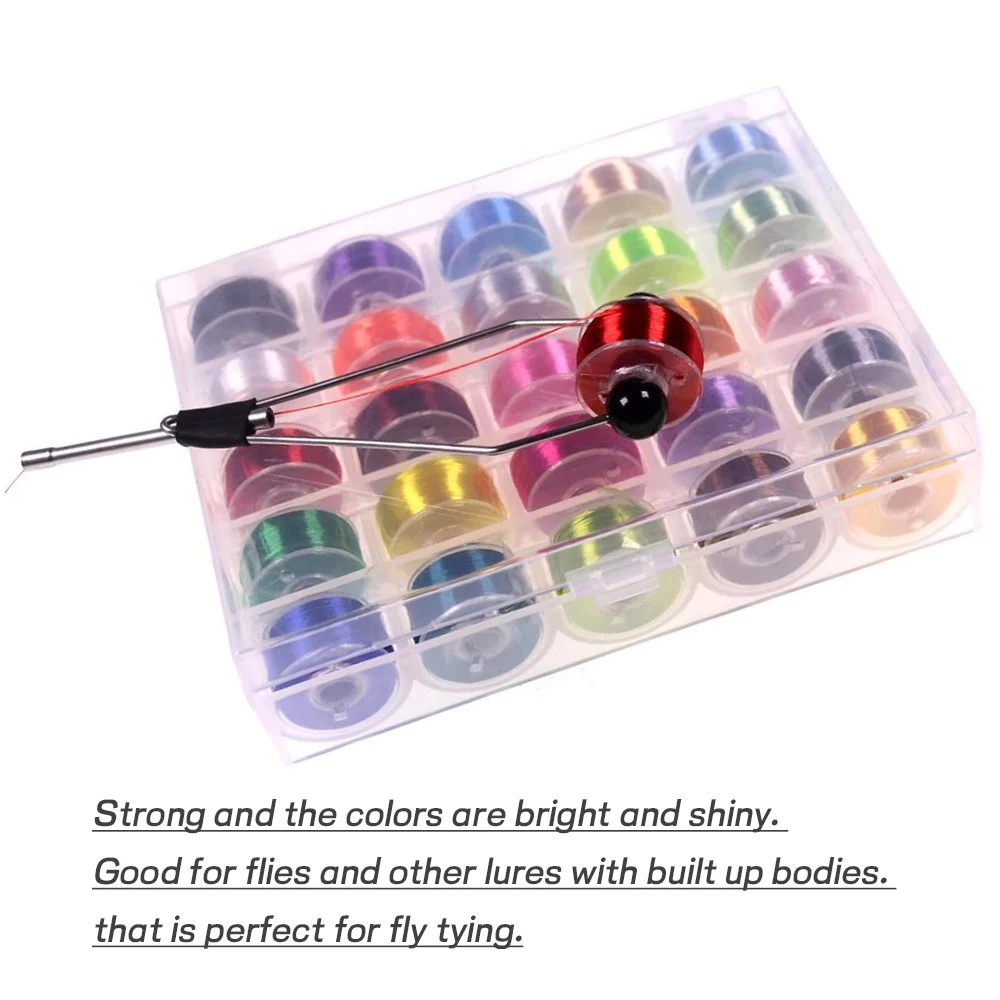 Wifreo 25 colores variados 200D, hilo de atado de moscas de pesca, Material de hilo para atar moscas pequeñas, cuerpos de moscas húmedas secas