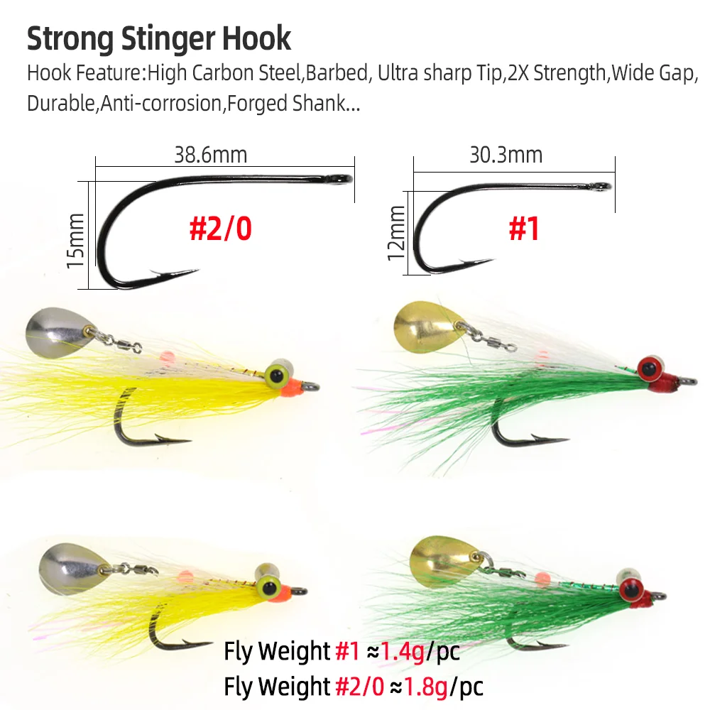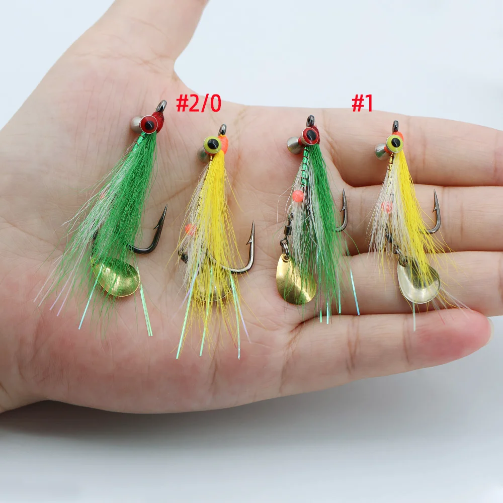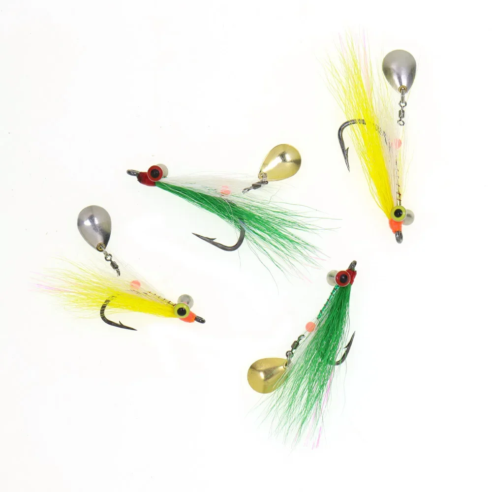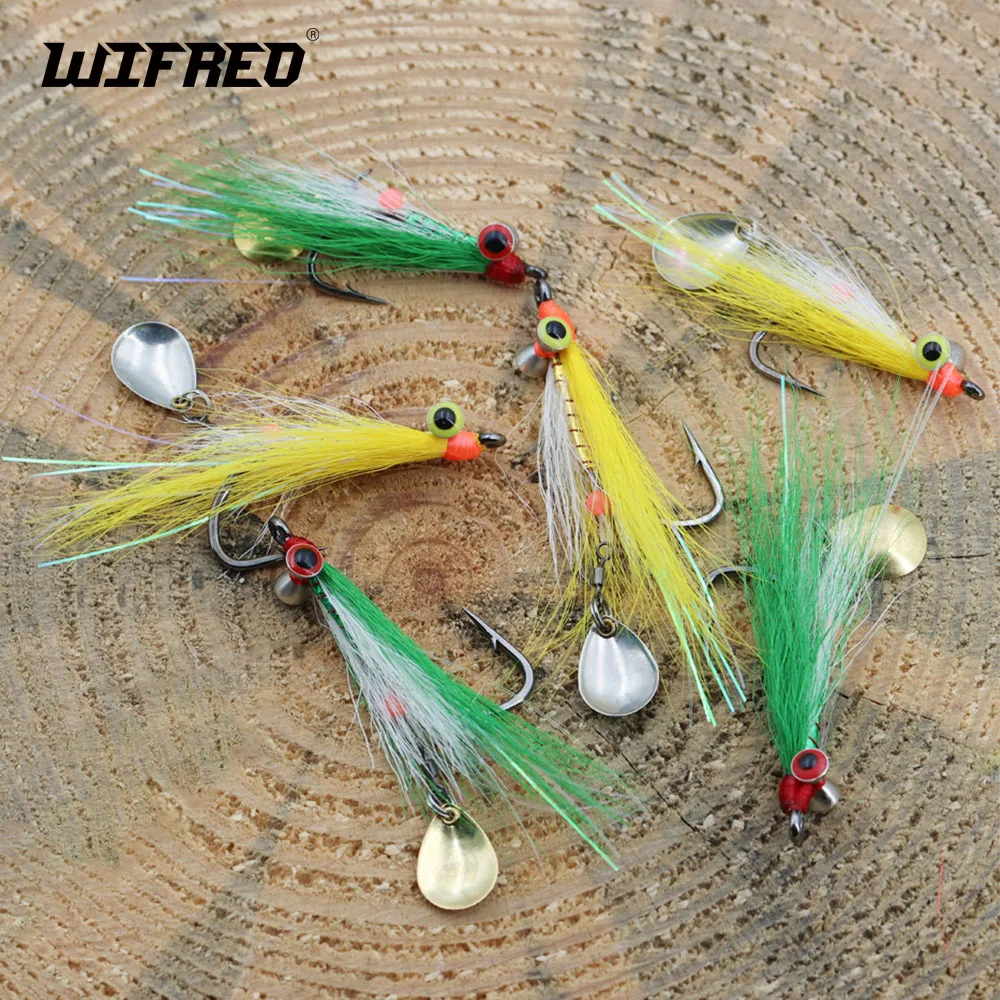 Wifreo 3 piezas/4 piezas#1#2/0 Bucktail Clouser profundo Minnow Streamer mosca con cuchara de Metal giratoria rodante lentejuelas señuelo de pesca de trucha