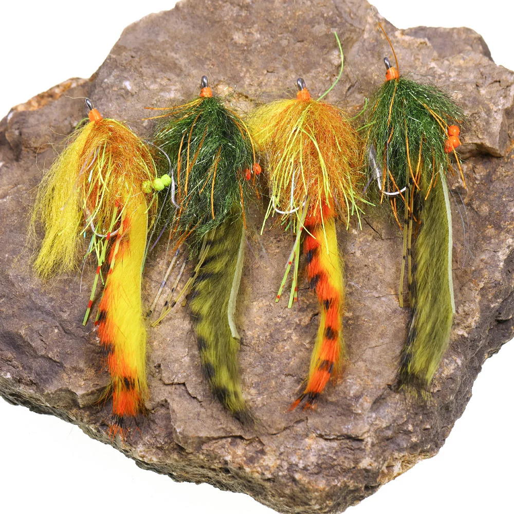 Wifreo 3 uds/4 Uds 2/0 Hare tira Zonker Streamer mosca púas gancho de acero inoxidable Tarpon conejito mosca lubina Lucio señuelo de pesca cebos