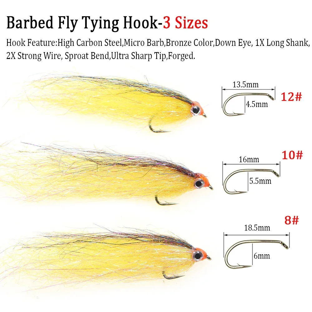 Característica del gancho: acero con alto contenido de carbono, micro púas, color bronce, ojo abajo, vástago largo 1X, alambre fuerte 2X, curvatura de piñón, punta ultra afilada, forjada.