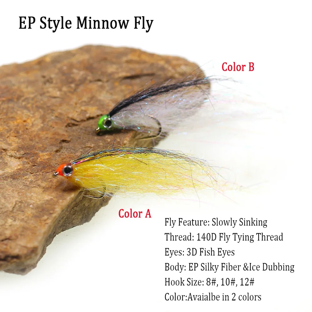 Wifreo 3 uds herido EP fibra sedosa Minnow Fly Ice Dub cebo pez serpentina mosca para trucha lubina stehead salmón señuelo de pesca cebos