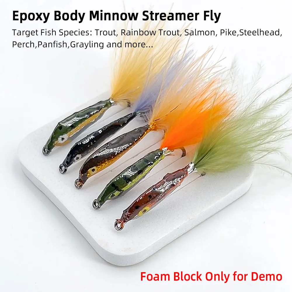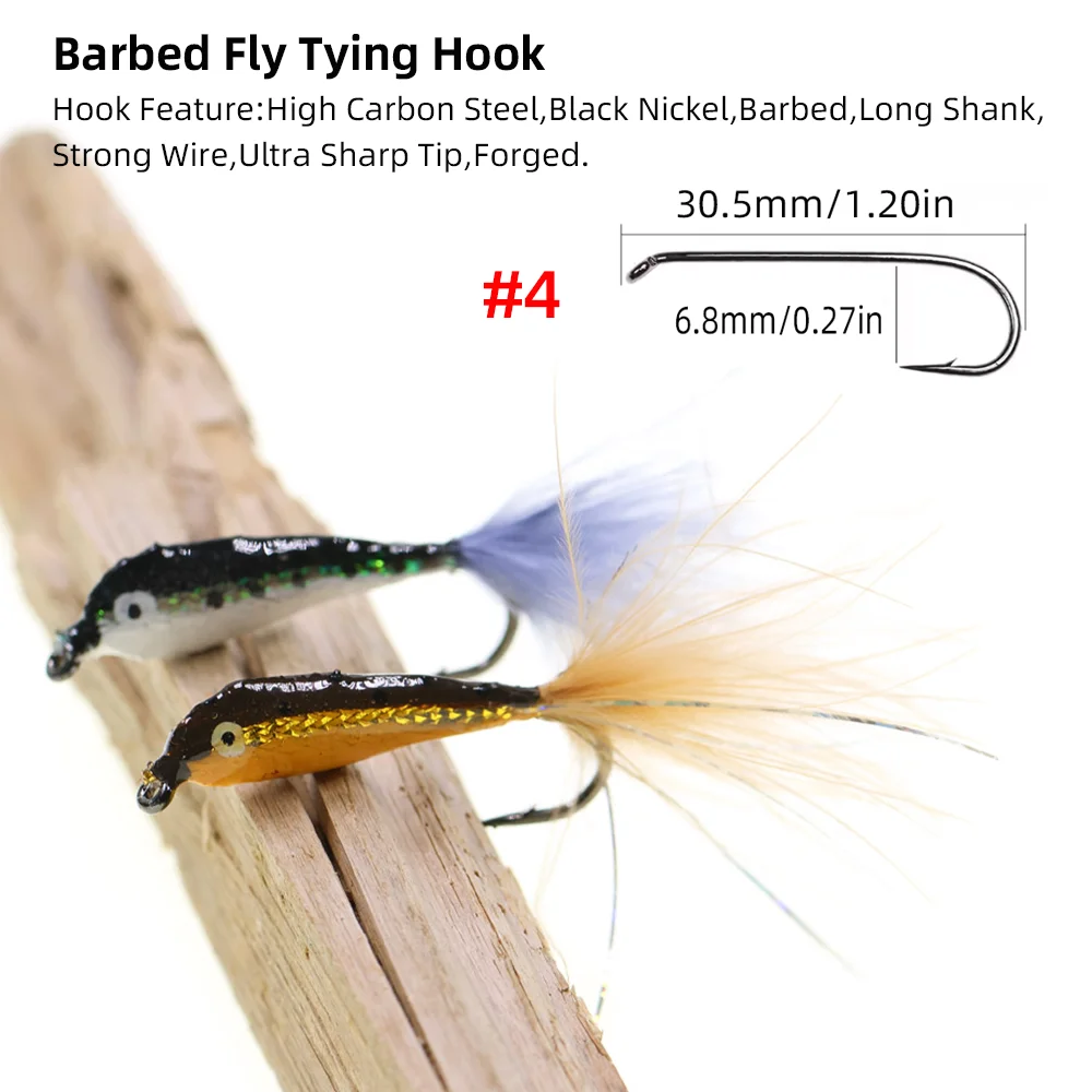 Wifreo 3pcs/5pcs #4 Epoxy Minnow Marabou Feather Tail Baitfish Barbed Fly Tying Hook Streamer Fly Trout Bass Pike Fishing Lures