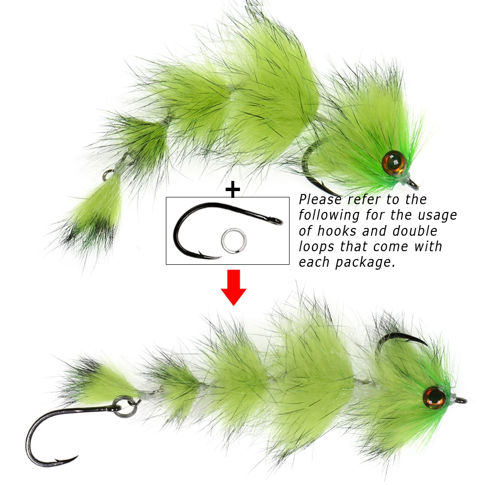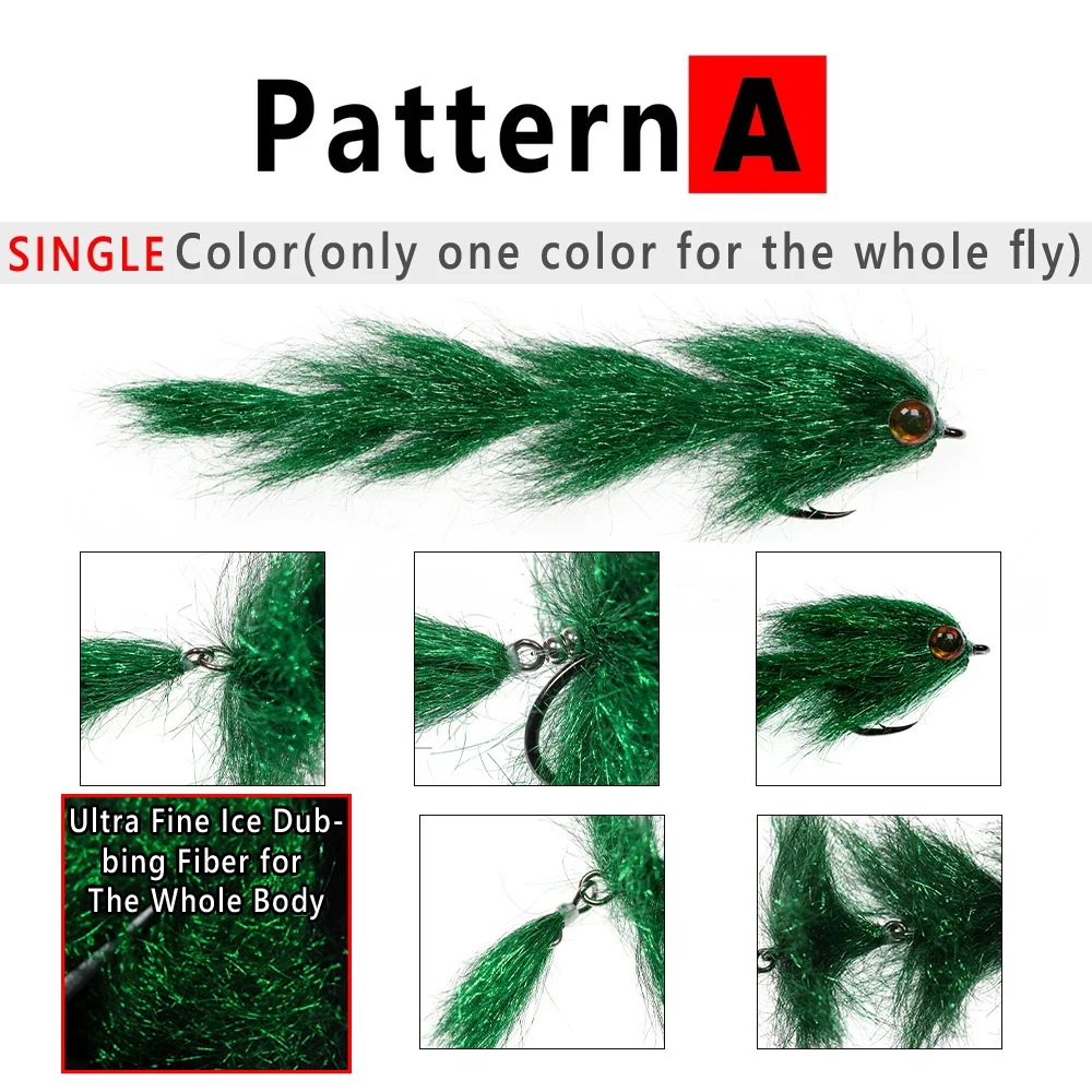Tiene una longitud promedio típica de pez cebo de 4,13" (10,5 cm), consta de 4 segmentos de columna de pescado articulada y está disponible en 9 variaciones de color que le permiten "componer la escotilla" para lograr el éxito en diferentes pesquerías y especies objetivo.La mosca está atada con un material sintético ultraligero "Finesse" que arroja agua brindándole una mosca que es fácil de lanzar y tiene un movimiento natural increíble en el agua.