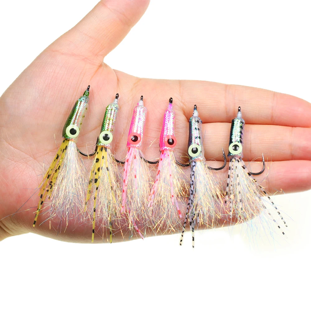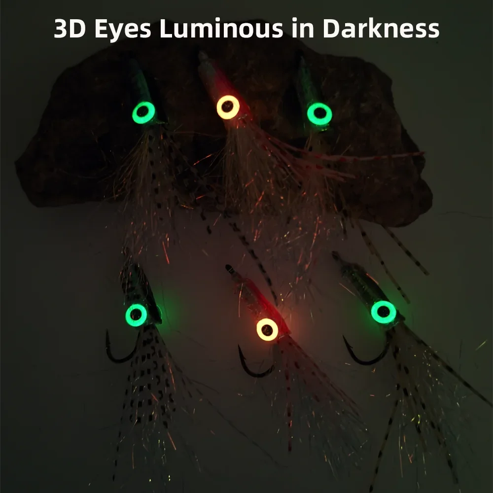Wifreo 4 Uds/6 Uds luminoso epoxi 3D ojo de pez calamar mosca patas de goma Flash oropel cola serpentina moscas lubina Tarpon atuna señuelo de pesca