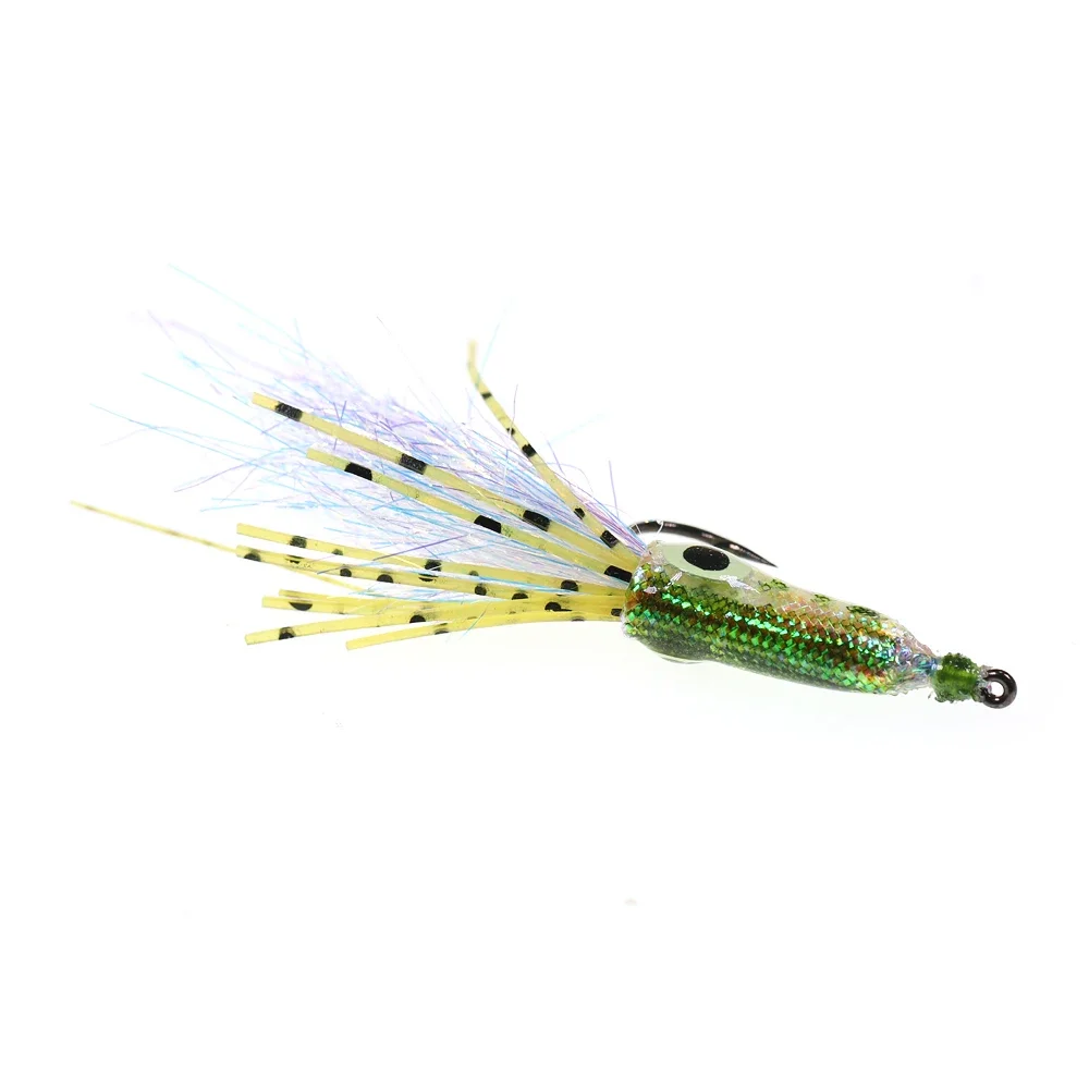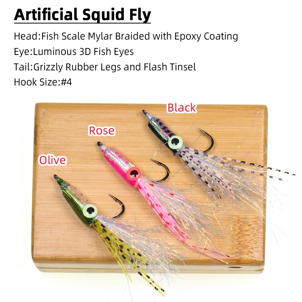 Una mosca de calamar es un tipo de patrón de mosca que se utiliza en la pesca con mosca de agua salada y dulce para imitar los calamares.Se utiliza para muchos peces de caza, como lubina rayada, pez azul, tarpon y atún, etc....Las moscas de los calamar están diseñadas para imitar el movimiento y la apariencia de los calamares en el agua.¡Su movimiento realista y su destello los hacen irresistibles para los peces depredadores!