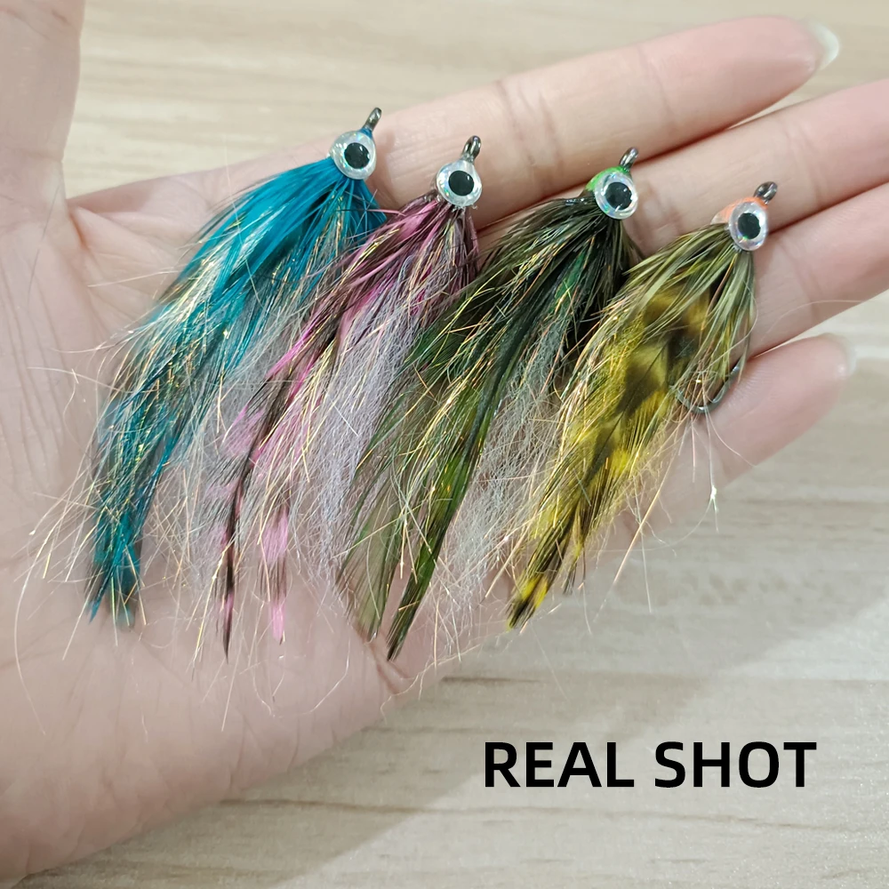 Wifreo 4 unids/caja 2,3 ′′ ~ 2,7 ′′ de longitud Grizzly sillín Hackle ojos 3D cebo pez mosca pequeñas serpentinas moscas trucha lubina señuelo de pesca cebos