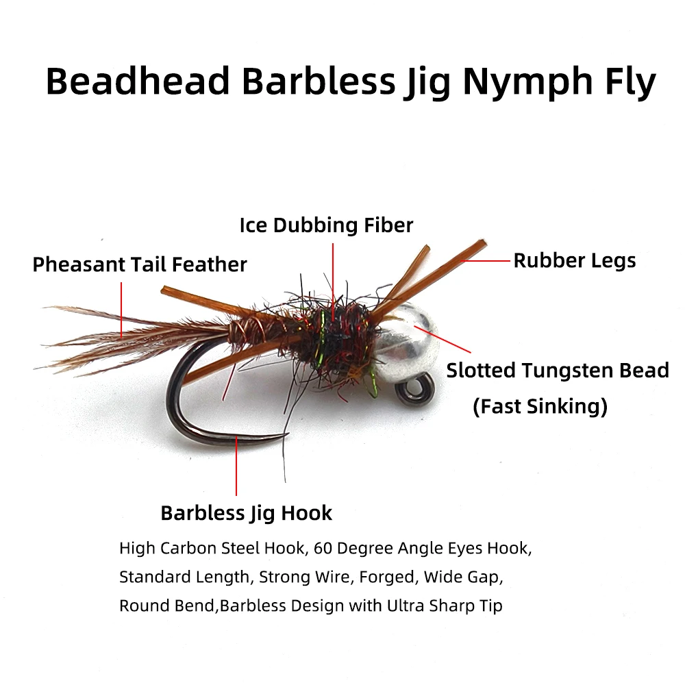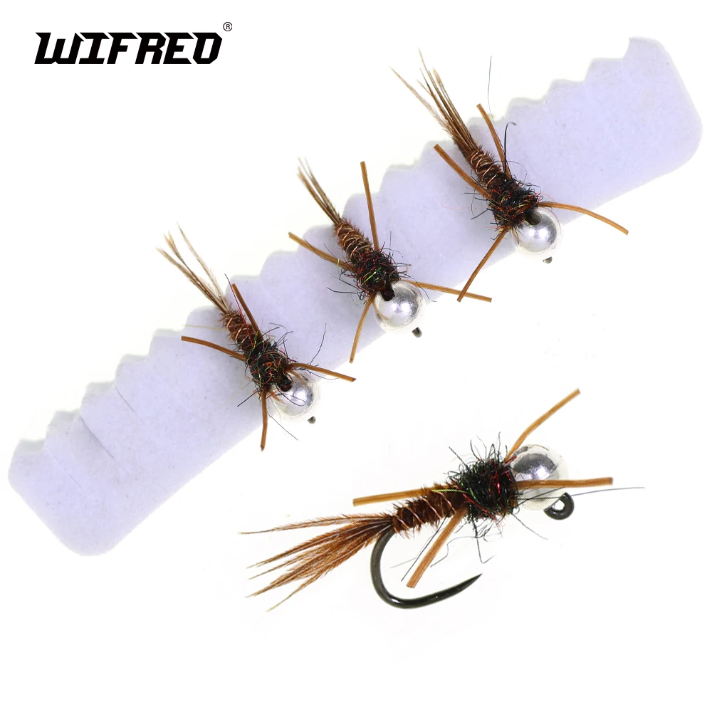 Wifreo 4PCS#14#16 cabeza de cuentas de tungsteno plantilla sin púas ninfa mosca goma pierna Pheasant cola euro ninfa señuelo de pesca de hundimiento rápido