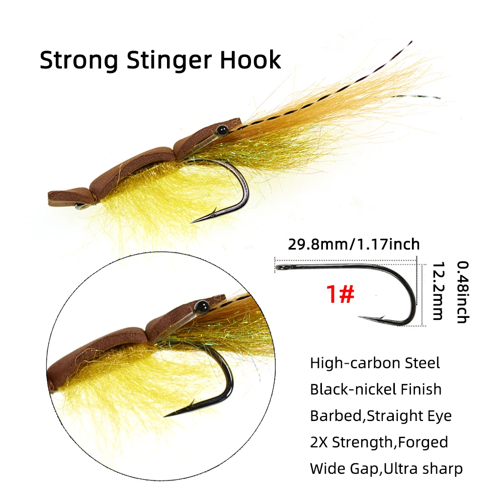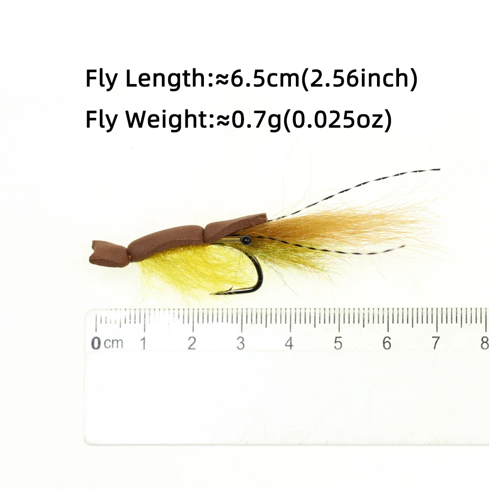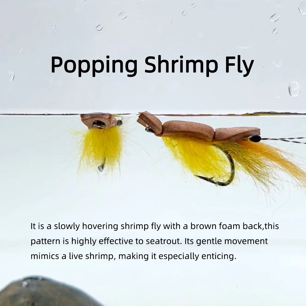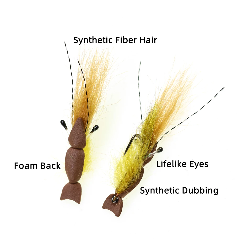 Es una mosca de camarones lentamente flotante con un respaldo de espuma marrón, este patrón es muy efectivo para la trucha marina.Su suave movimiento crea un camarón vivo, lo que lo hace especialmente atractivo.