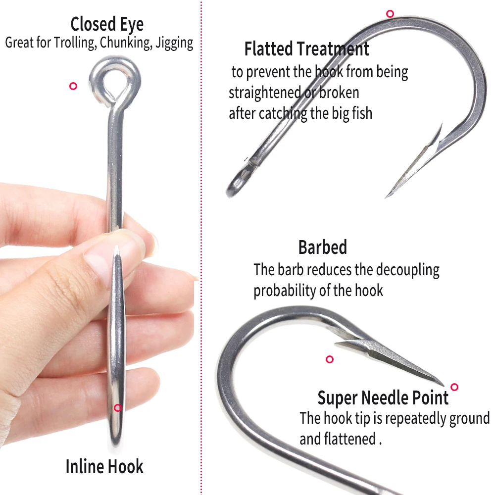 WIFREO 5/0-13/0 anzuelo de pesca de agua salada de acero inoxidable gran juego Jigging atún tiburón cebo de pesca anzuelos resistentes 7691