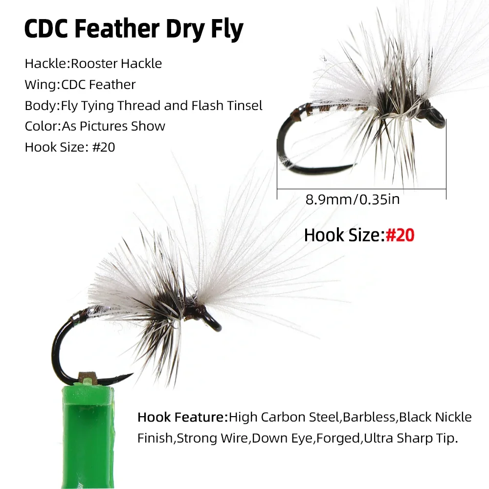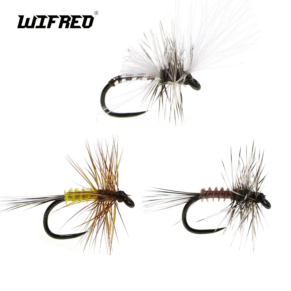 Wifreo 5pcs/6pcs #20 Barbless Hook Rooster Hackle Mayfly CDC Feather Dry Fly Artificial Insect Bait Trout Grayling Fishing Lure