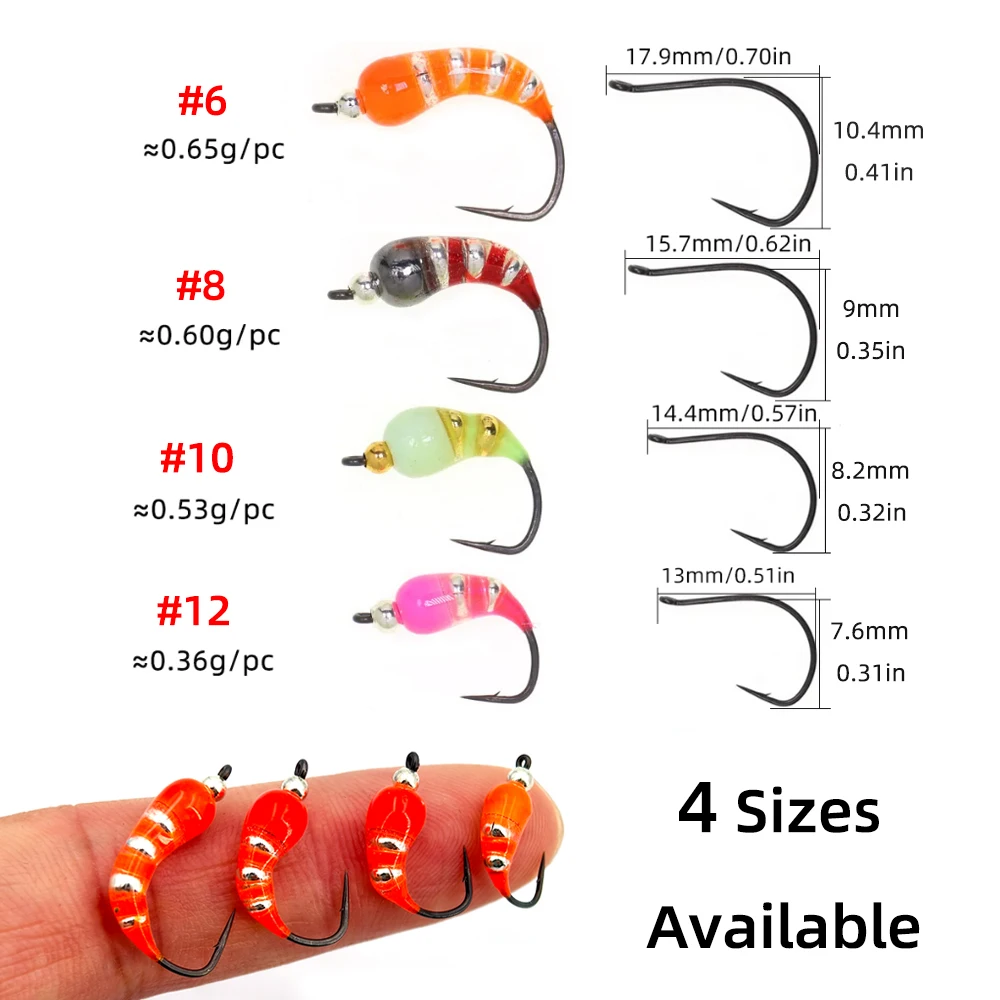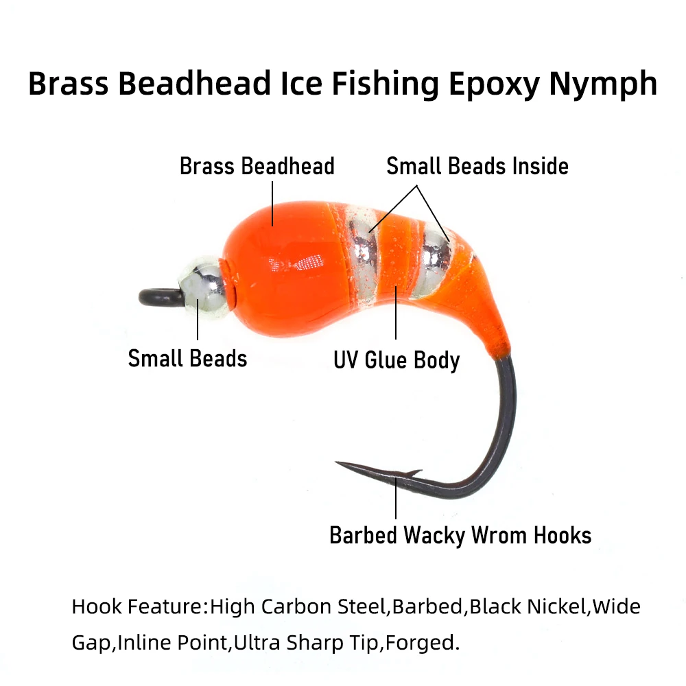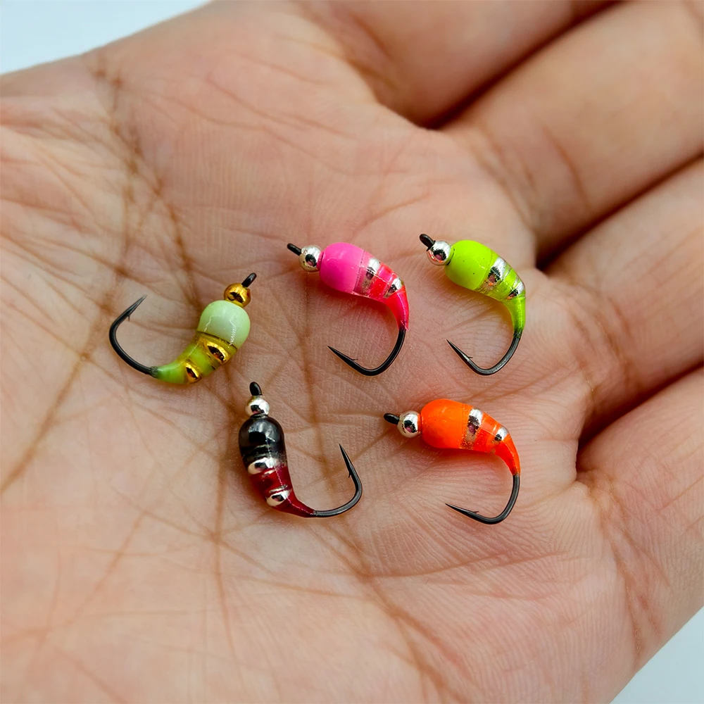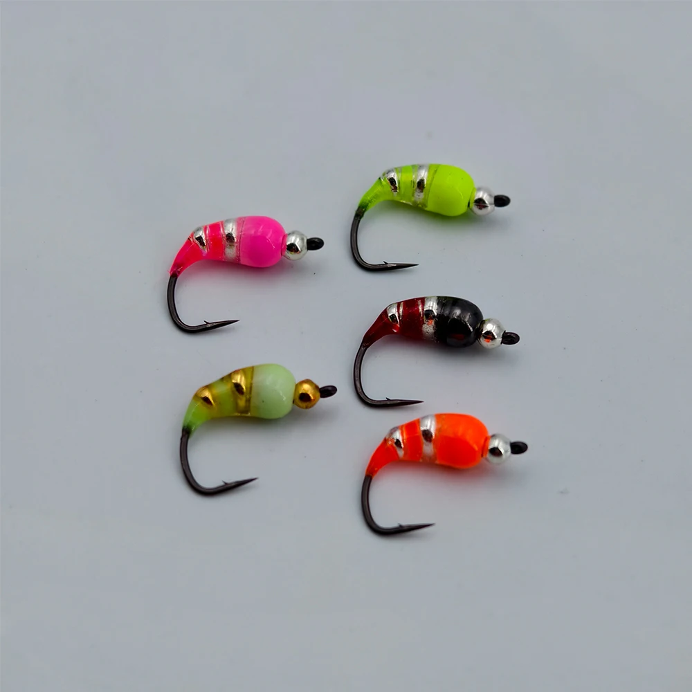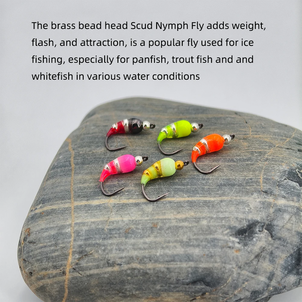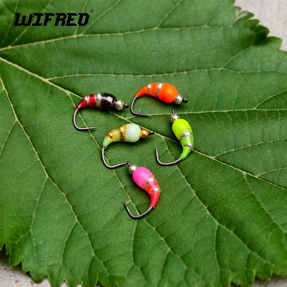 Wifreo 5 uds Señuelos de pesca en hielo#6-#12 cabezales de cuentas de latón, ninfa epoxi, Color brillante, Bug Scud, pesca con mosca, trucha, lubina, tipo de pez, señuelo