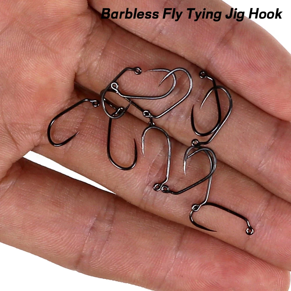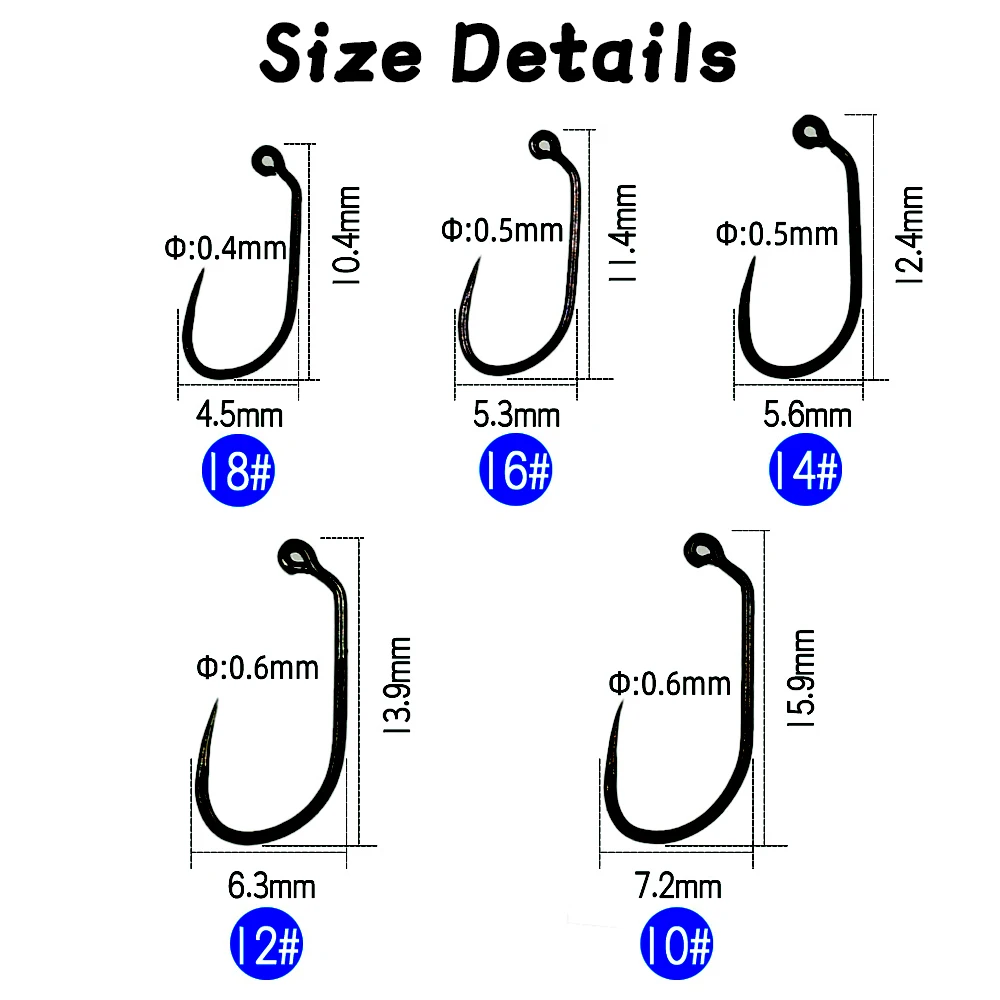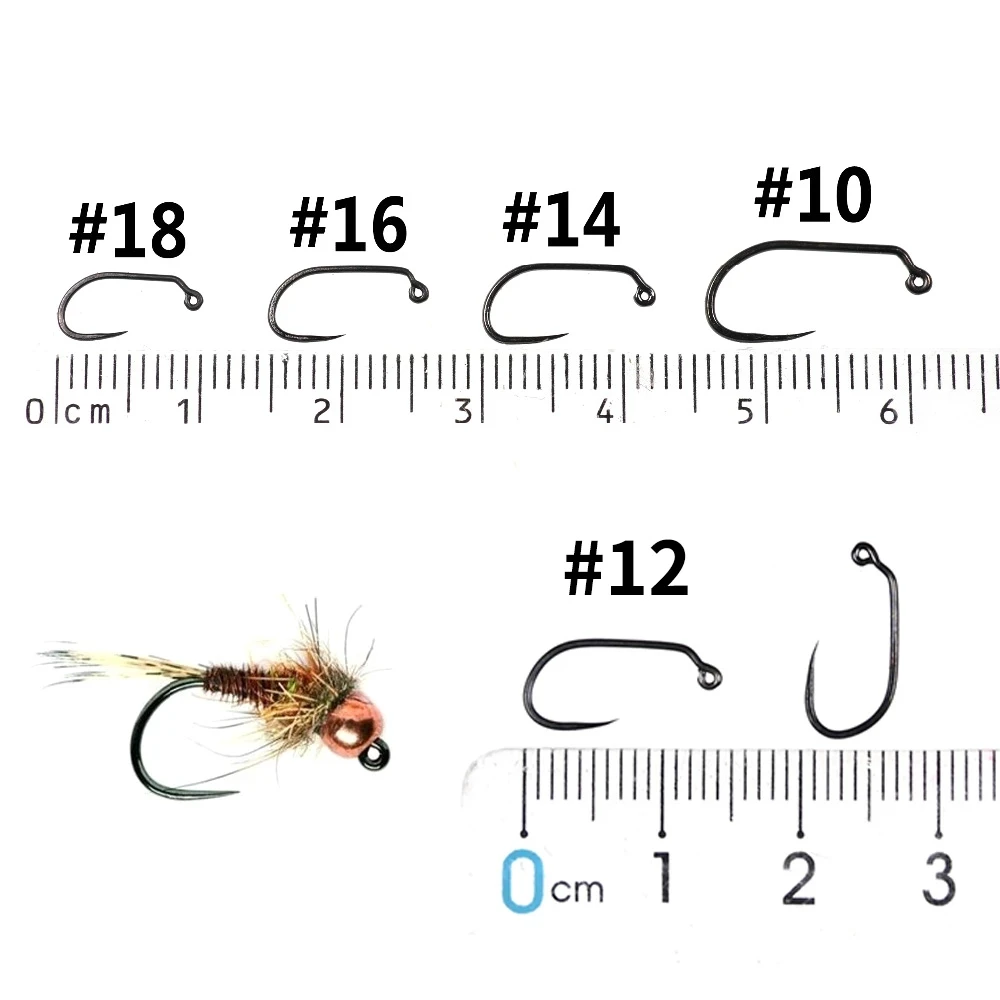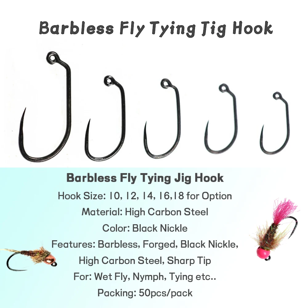WIFREO 50 Uds. Anzuelos de pesca con mosca sin púas, anzuelos de pesca con mosca de níquel negro, anzuelos húmedos, ninfas y caddis Pupa Jig#10-18