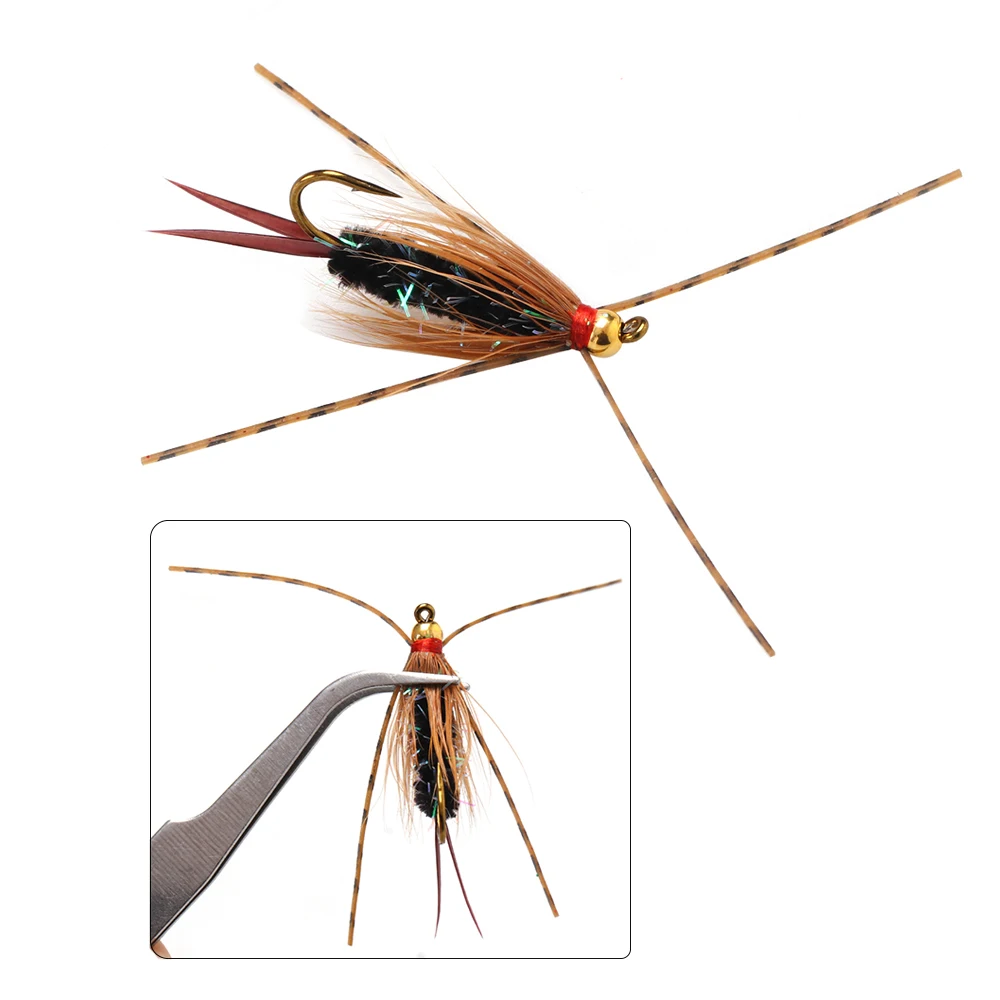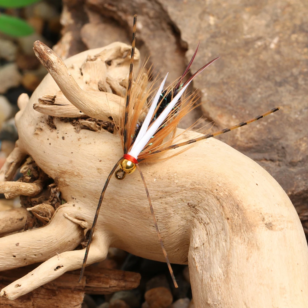 El Príncipe Nymph es un patrón de mosca popular y eficaz utilizado en la pesca con mosca, especialmente para apuntar a truchas.La mosca suele presenta un cuerpo delgado y aerodinámico hecho de materiales como hierba de pavo real o doblaje sintético. Este nuevo patrón agrega 2 patas de goma en la cabeza, lo que le da una apariencia realista en el agua.La Rubber Leg Prince Nymph es otra variación popular del Prince Nymph.La adición de patas de goma añade más movimiento a la mosca, haciéndola más atractiva para pescar.Esta variación es particularmente eficaz al pescar truchas en arroyos y ríos con una gran población de mosca.Además, el Prince Nymph tiene un peso con una cabeza de cuentas de latón, lo que ayuda a hundirse rápidamente hasta la profundidad deseada y le da un movimiento realista y jigging en el agua.Es una opción confiable tanto para aguas quietas como para arroyos rápidos.