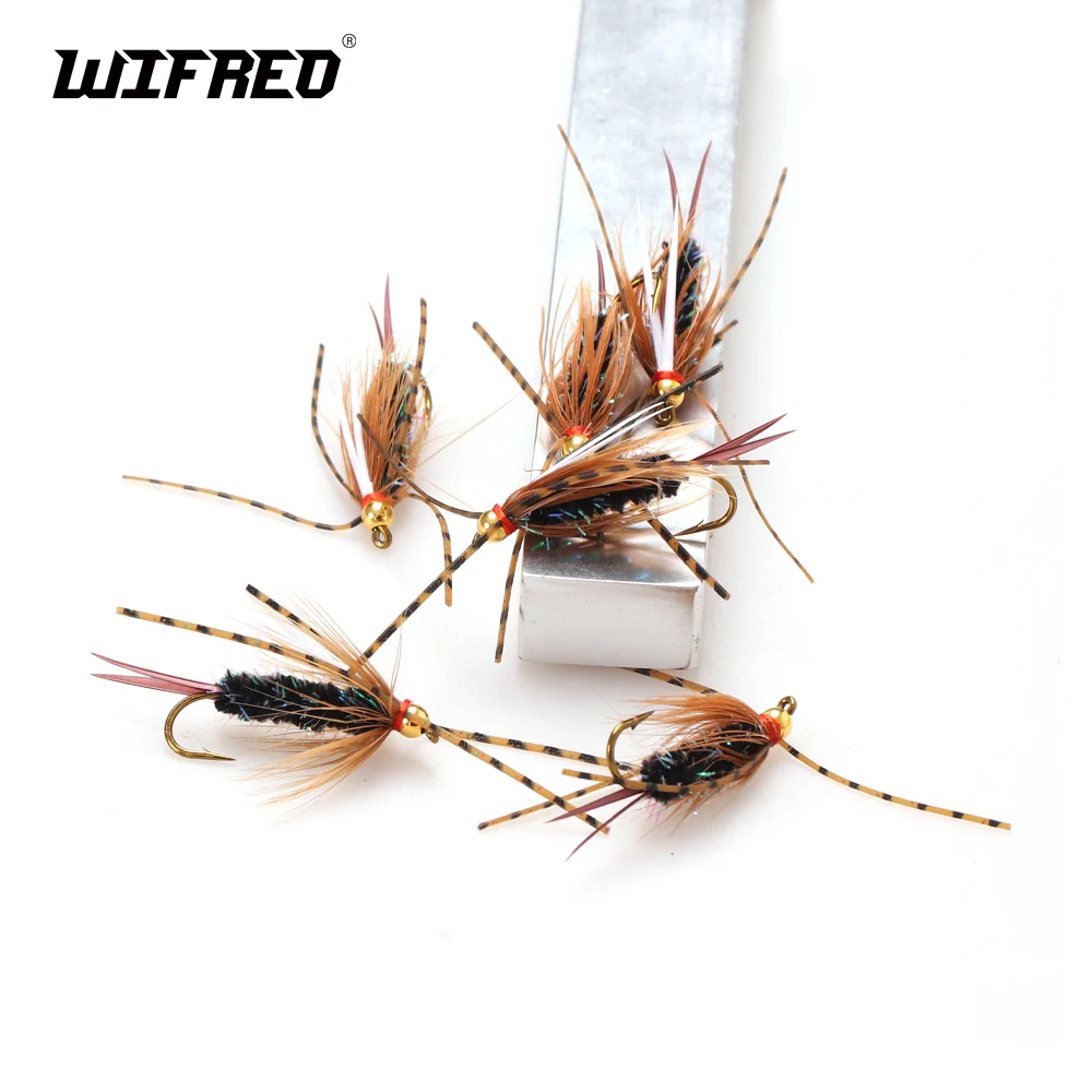 Wifreo 6# 10 Uds cabeza de cuentas de latón Grizzly patas de goma Príncipe Ninfa Stonefly Ninfa Caddis trucha salmón señuelo de pesca cebo arroyos ríos