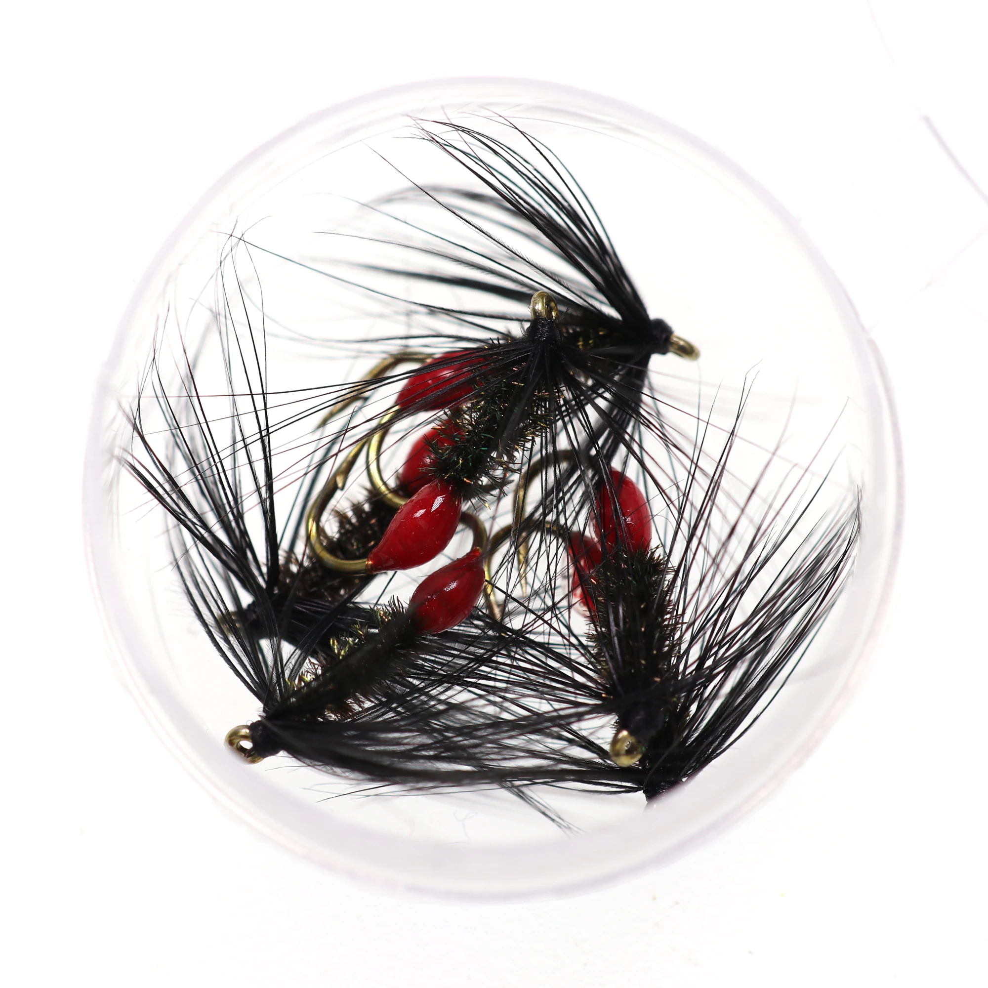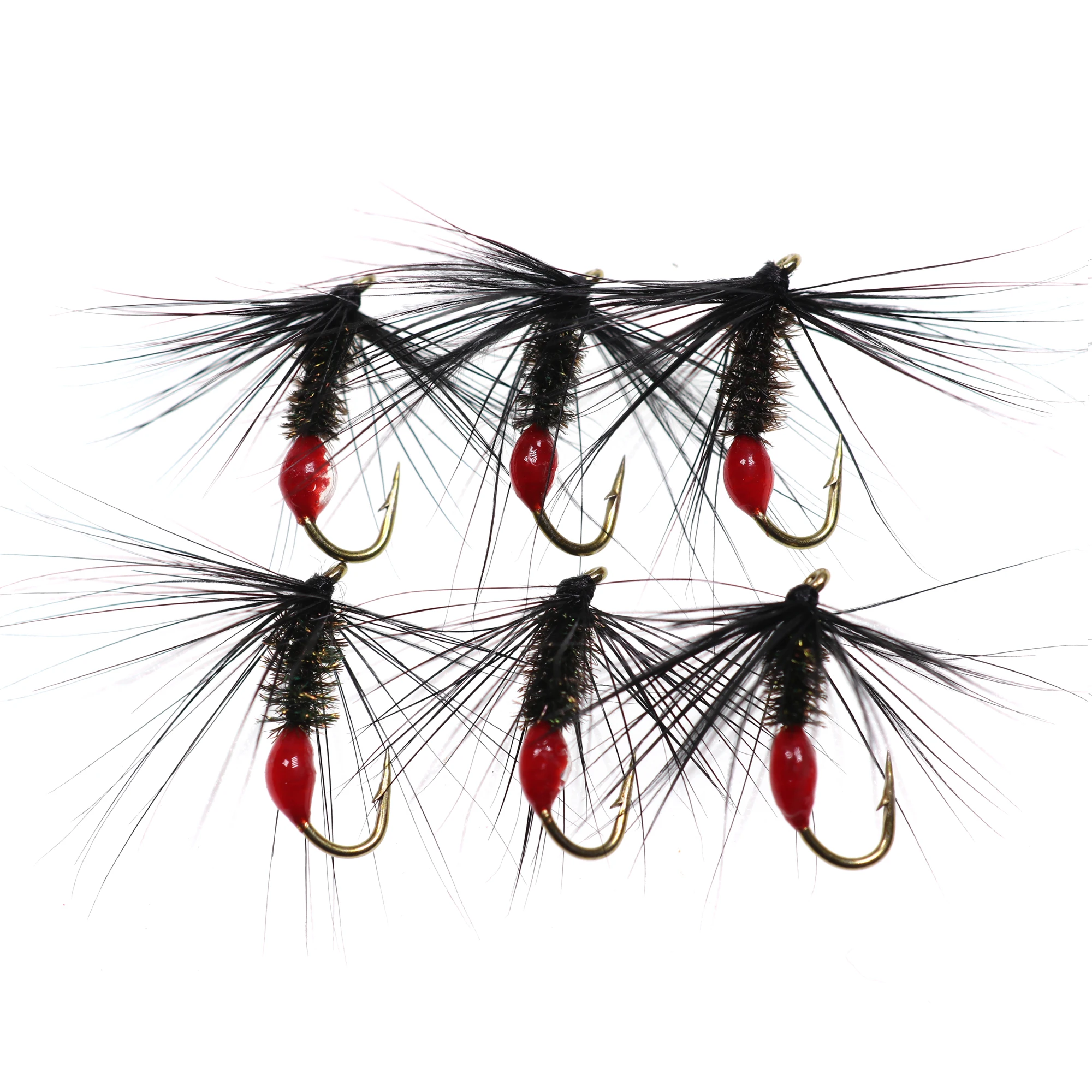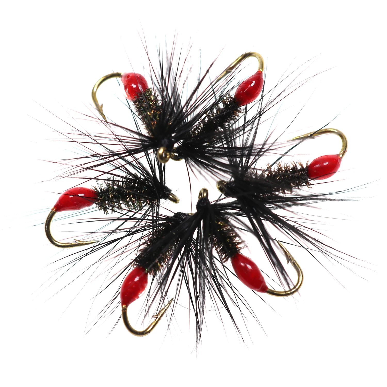 Bimoo 6 unids/lote#12 hormiga voladora de trasero rojo suave Hackle para pesca de trucha marrón arcoíris hormiga de pesca con mosca húmeda cebo
