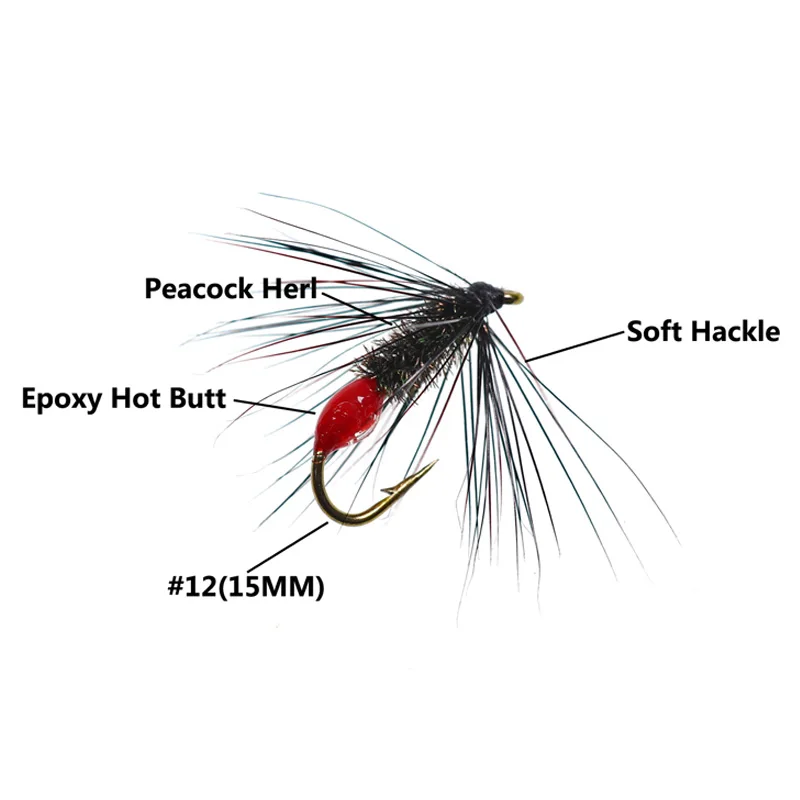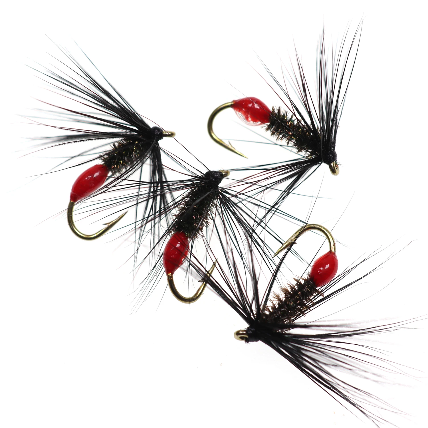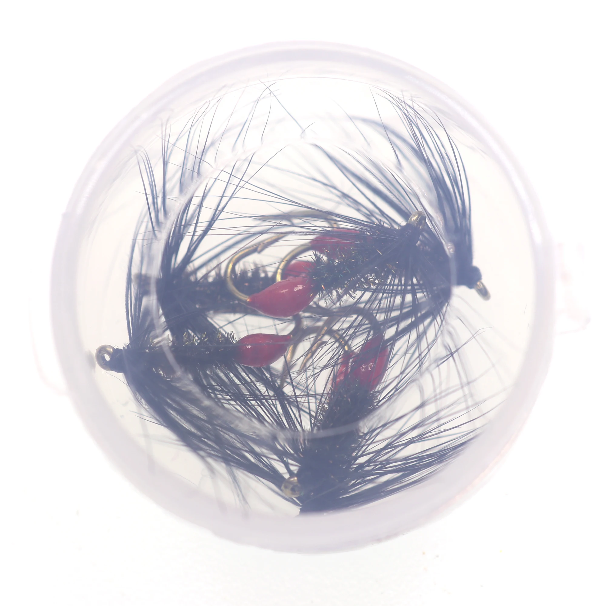 Bimoo 6 unids/lote#12 hormiga voladora de trasero rojo suave Hackle para pesca de trucha marrón arcoíris hormiga de pesca con mosca húmeda cebo