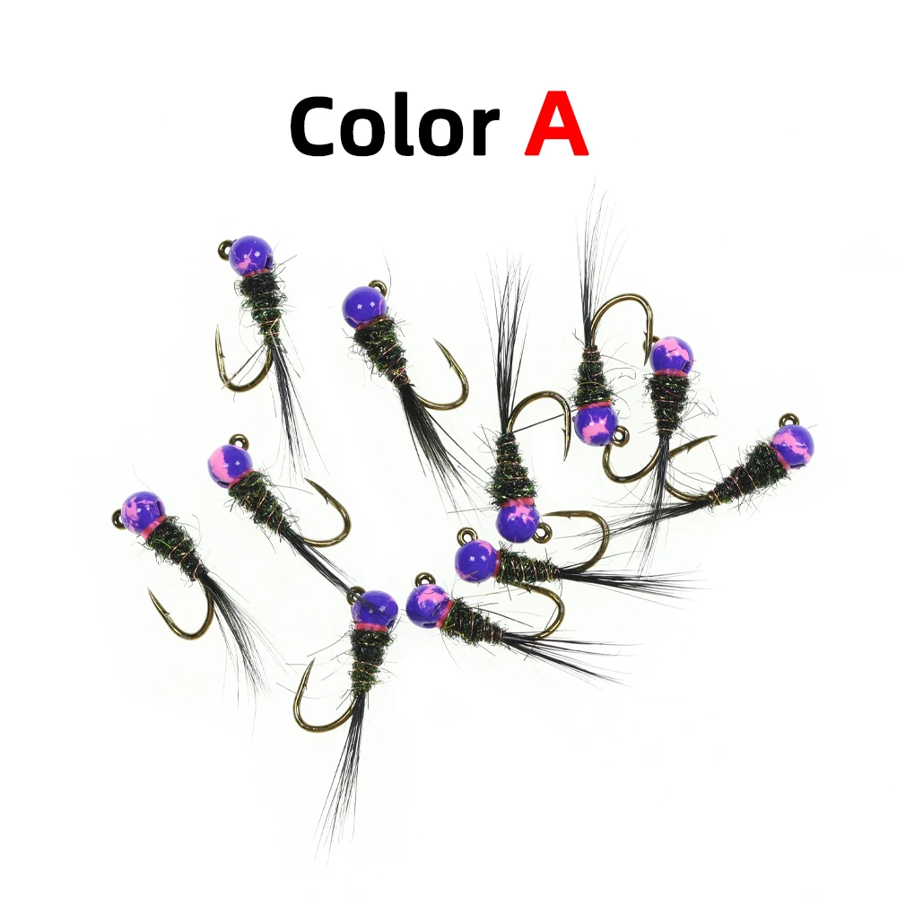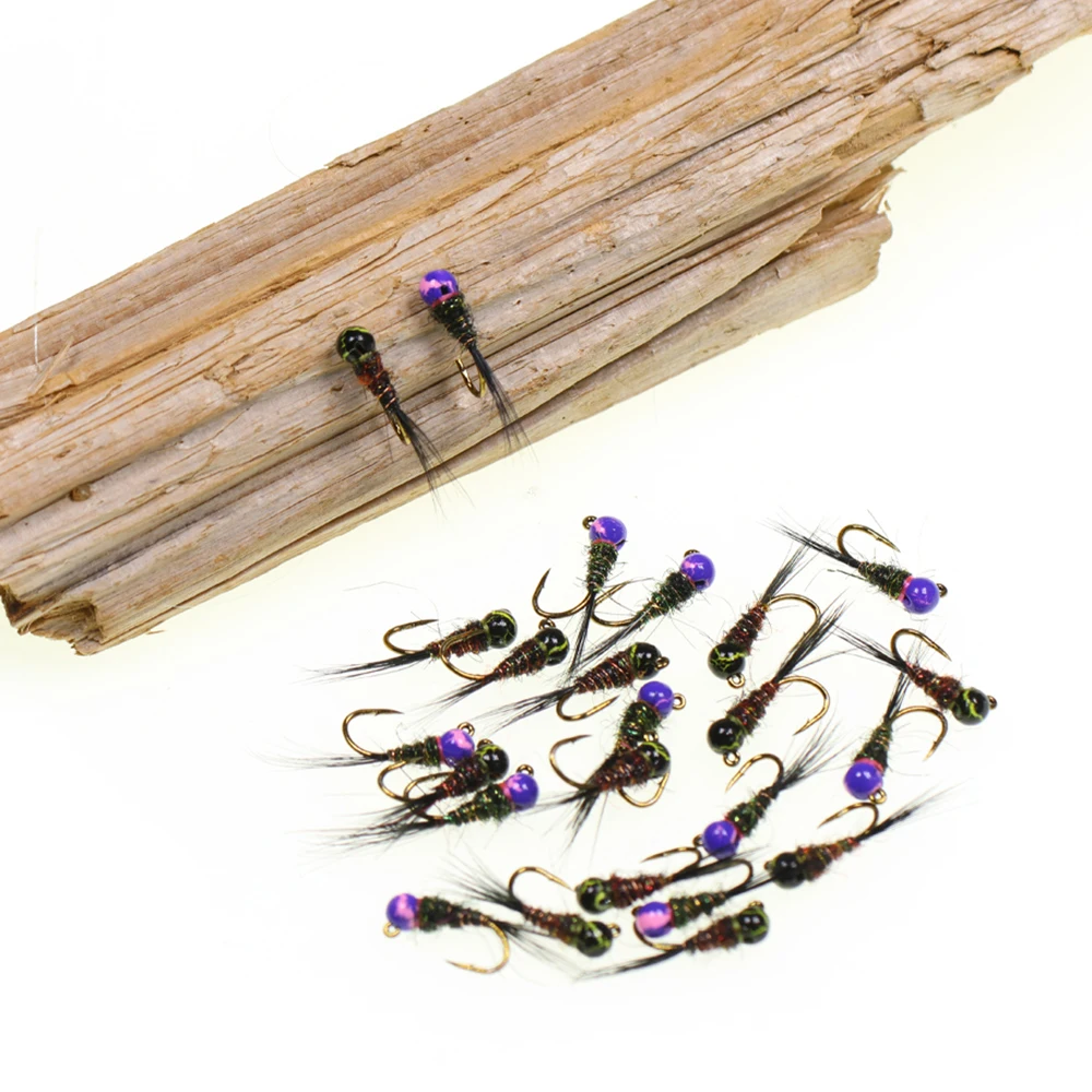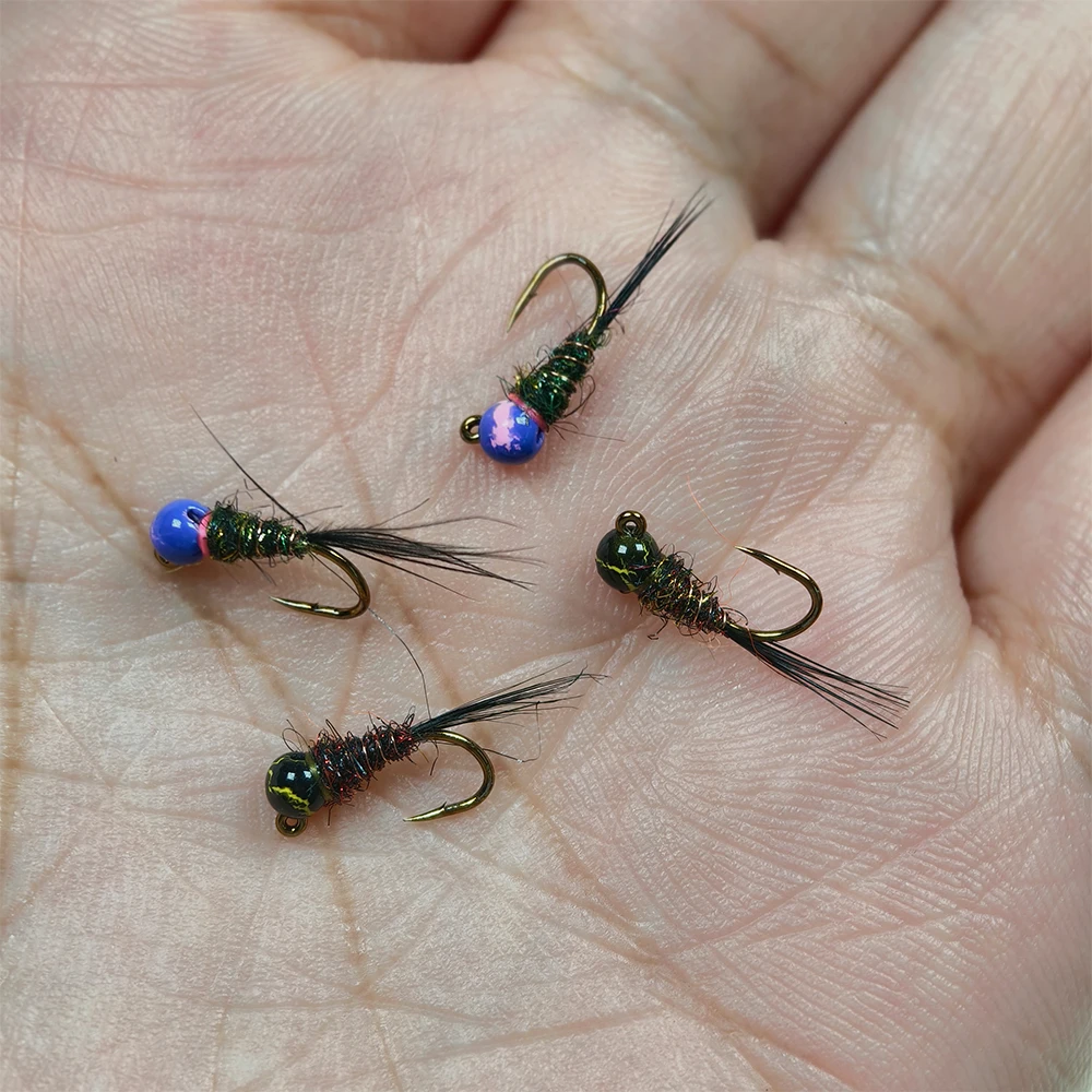 WIFREO 6 piezas 16# Gancho con diseño de grietas, plantilla con cabeza de cuentas, ninfa, moscas, gusano, hundimiento rápido, cebo de pesca de trucha, señuelo Artificial para pesca con mosca
