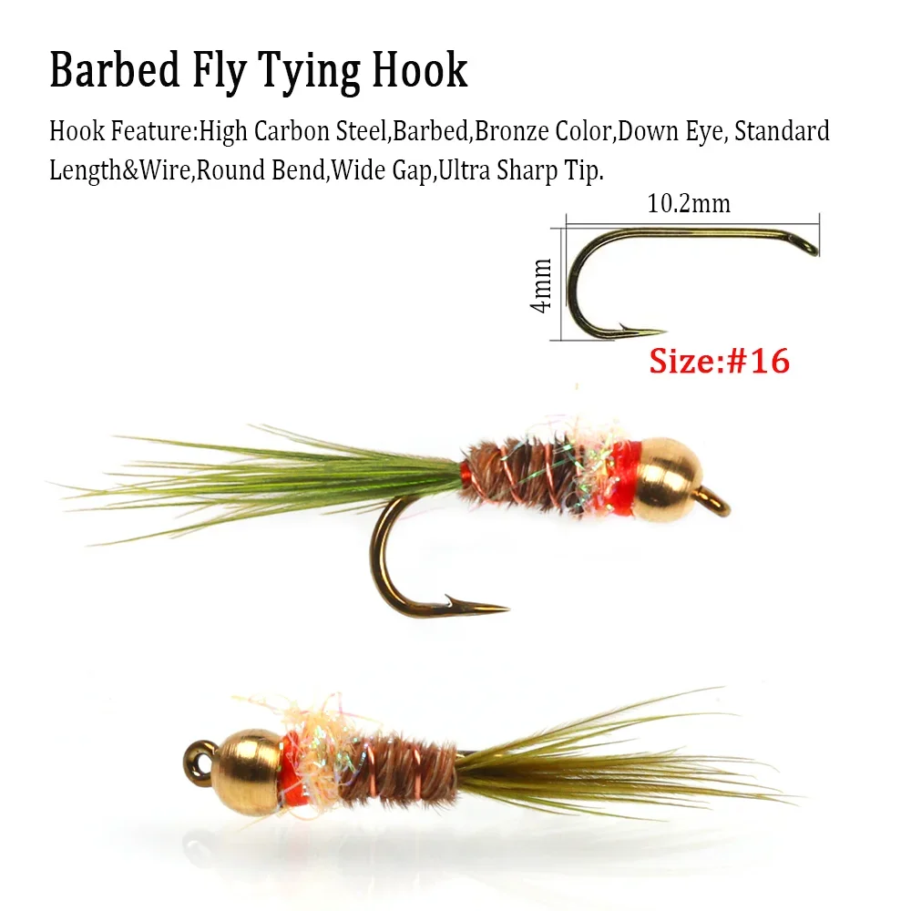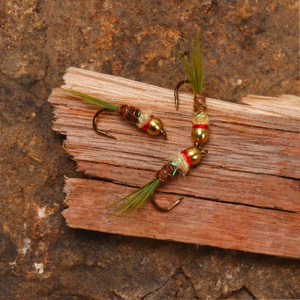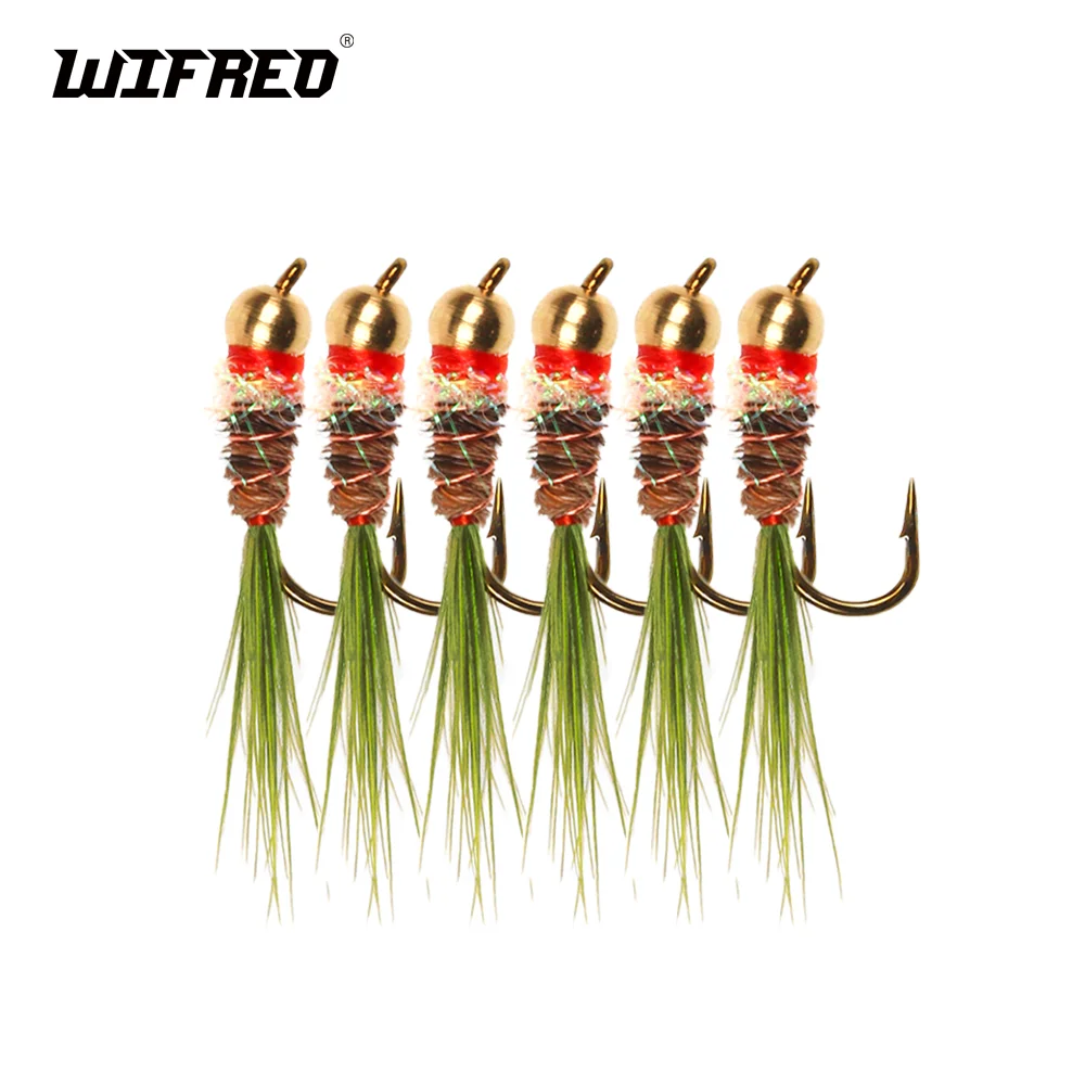 Wifreo 6pcs #16 Brass Bead Head Frenchie Nymph Fishing Flies Euro Nymphs Barbed Wet Fly For Trout Grayling Fishing Lure Baits