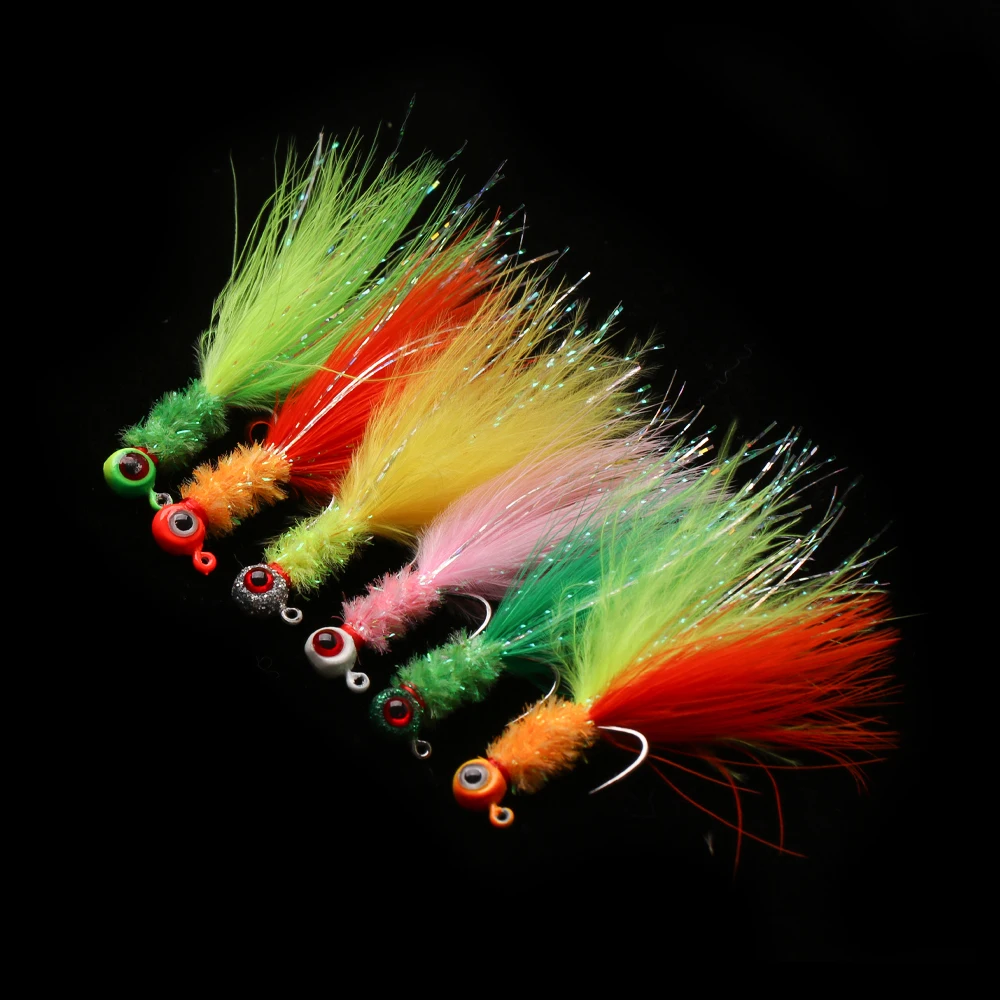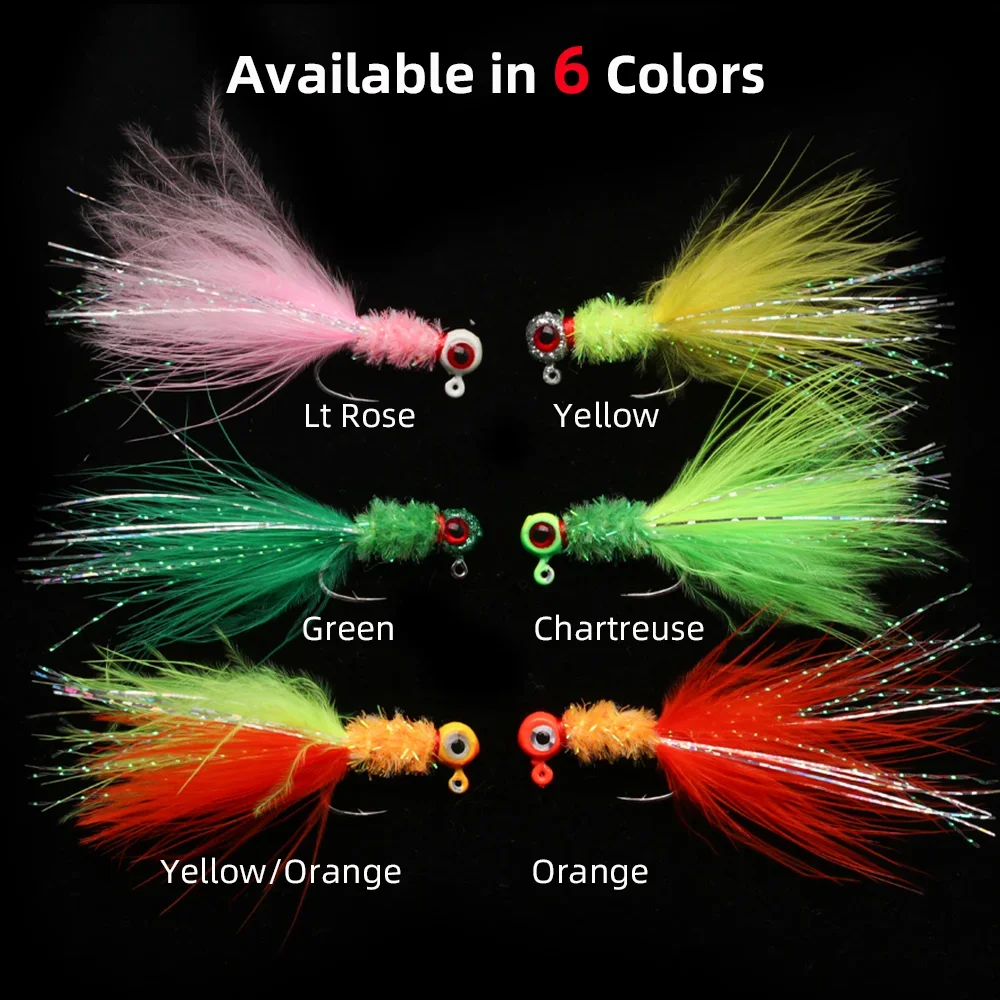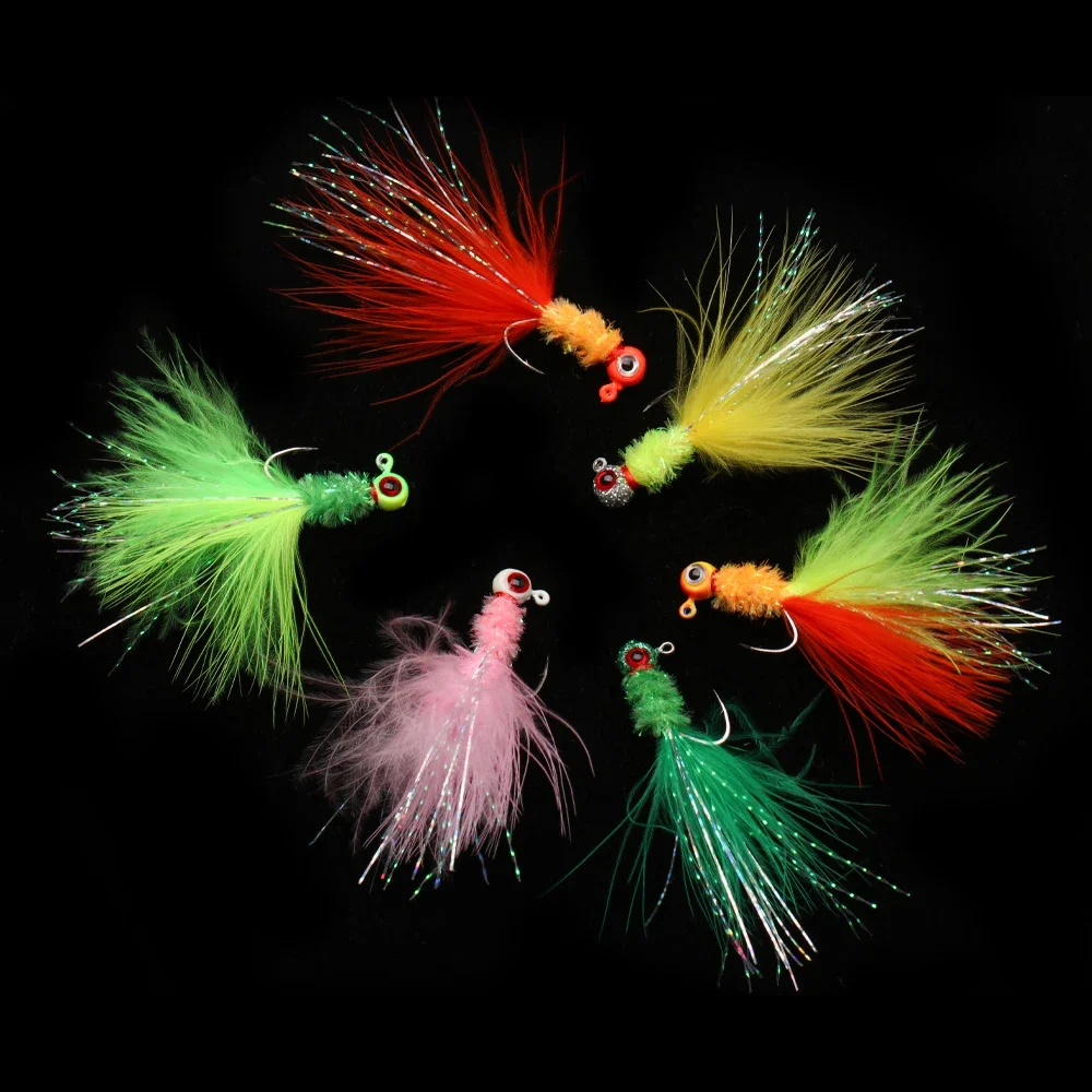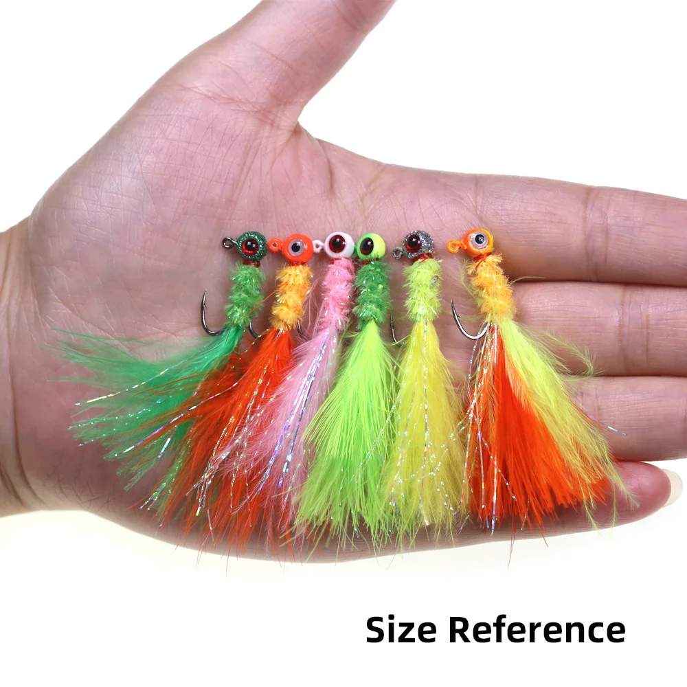 Wifreo 6pcs Marabou Feather Jig Head Hook Crappie Jigs Fishing Lure Ice Fishing Crappie Walleye Perch Trout Bass Fishing Lure