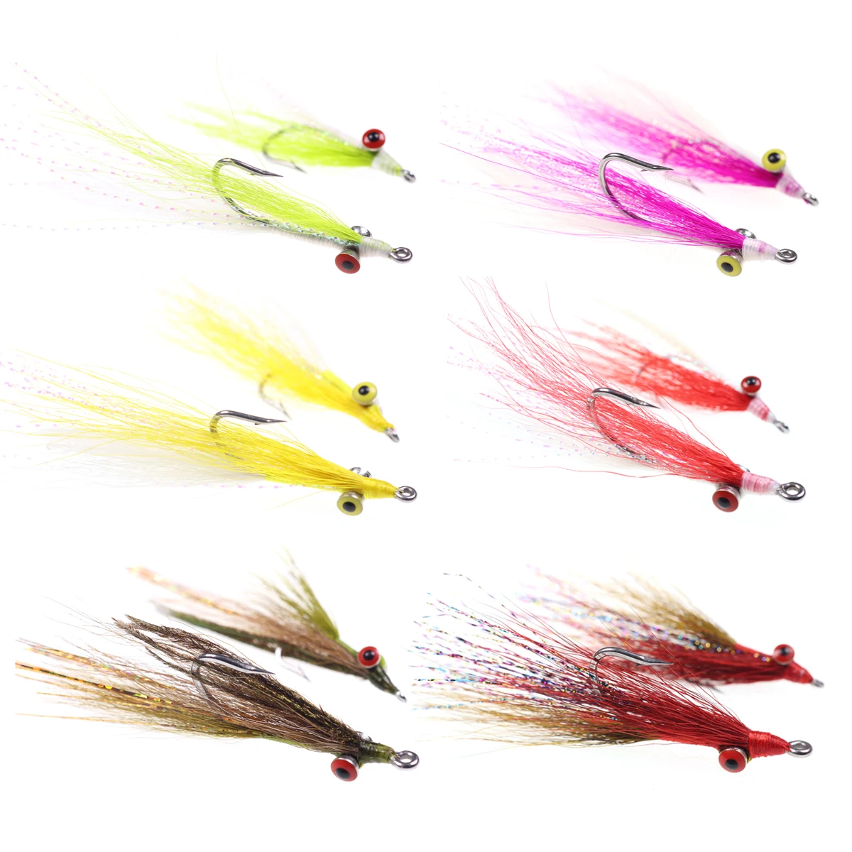 Wifreo 6 uds Clouser Minnow moscas de pesca atadas en gancho de acero inoxidable para agua salada agua dulce pesca con mosca cebo de moscas artificiales