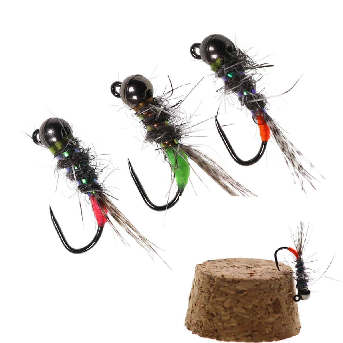 Wifreo, 6 uds., pesca de trucha, ninfa europea, mosca con cabezal de cuentas de tungsteno, moscas de pesca de hundimiento rápido