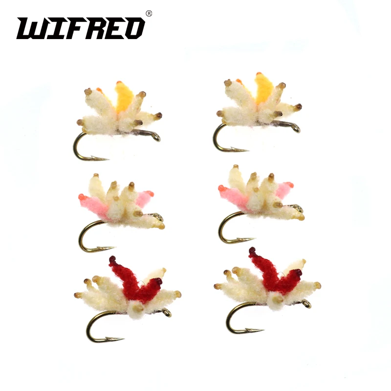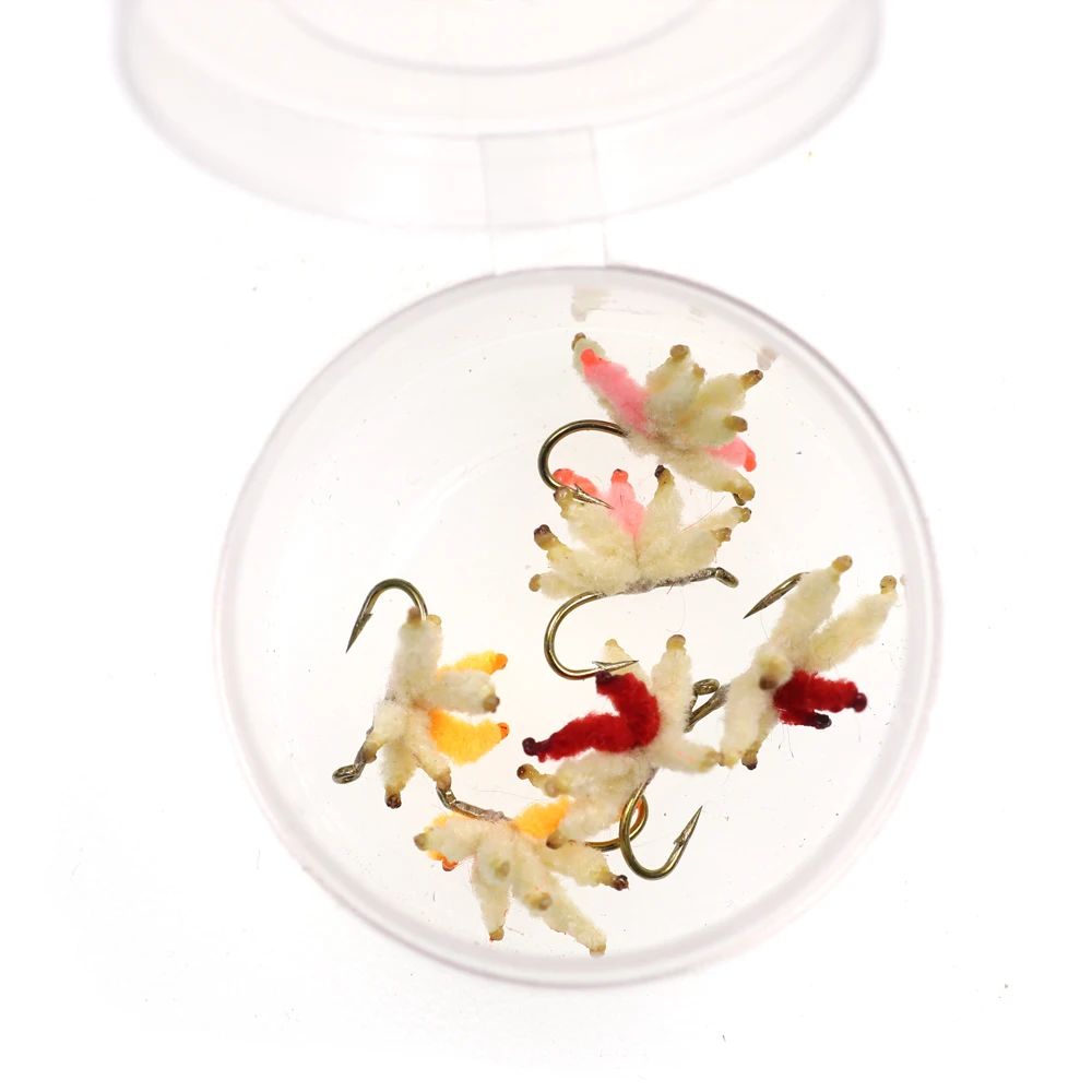 Wifreo 6PCS Size 18 Mix Color Trout Salmon Carp Crappie Bluegill Fishing Bait Artificial Maggots Fly Breadworm Cluster Bait