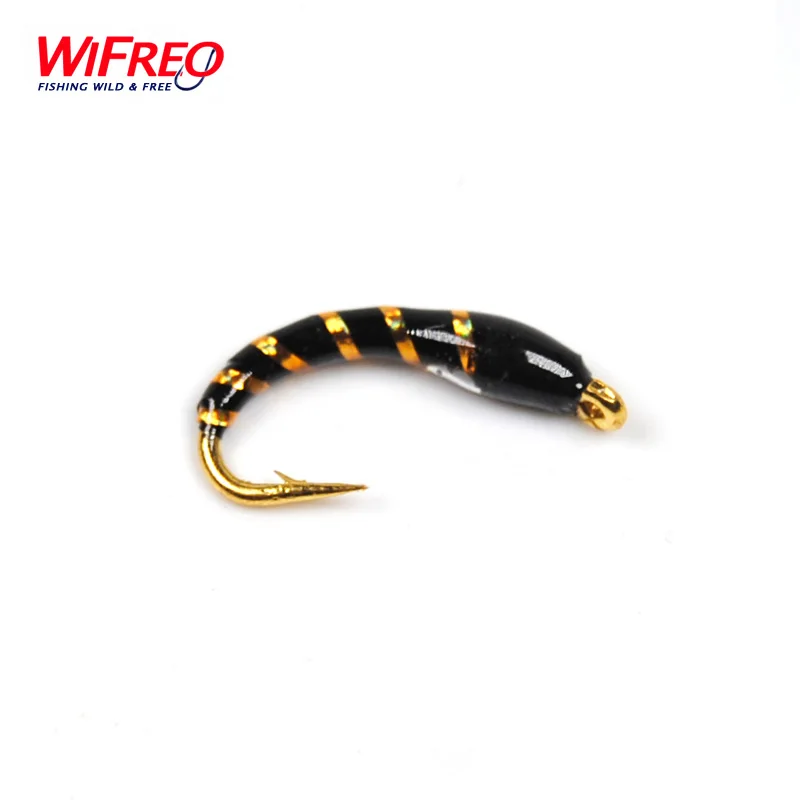 Wifreo 6PCS#16 anzuelos dorados, ninfa, moscas, cabeza de cuentas, zumbadores, señuelos de pesca con mosca