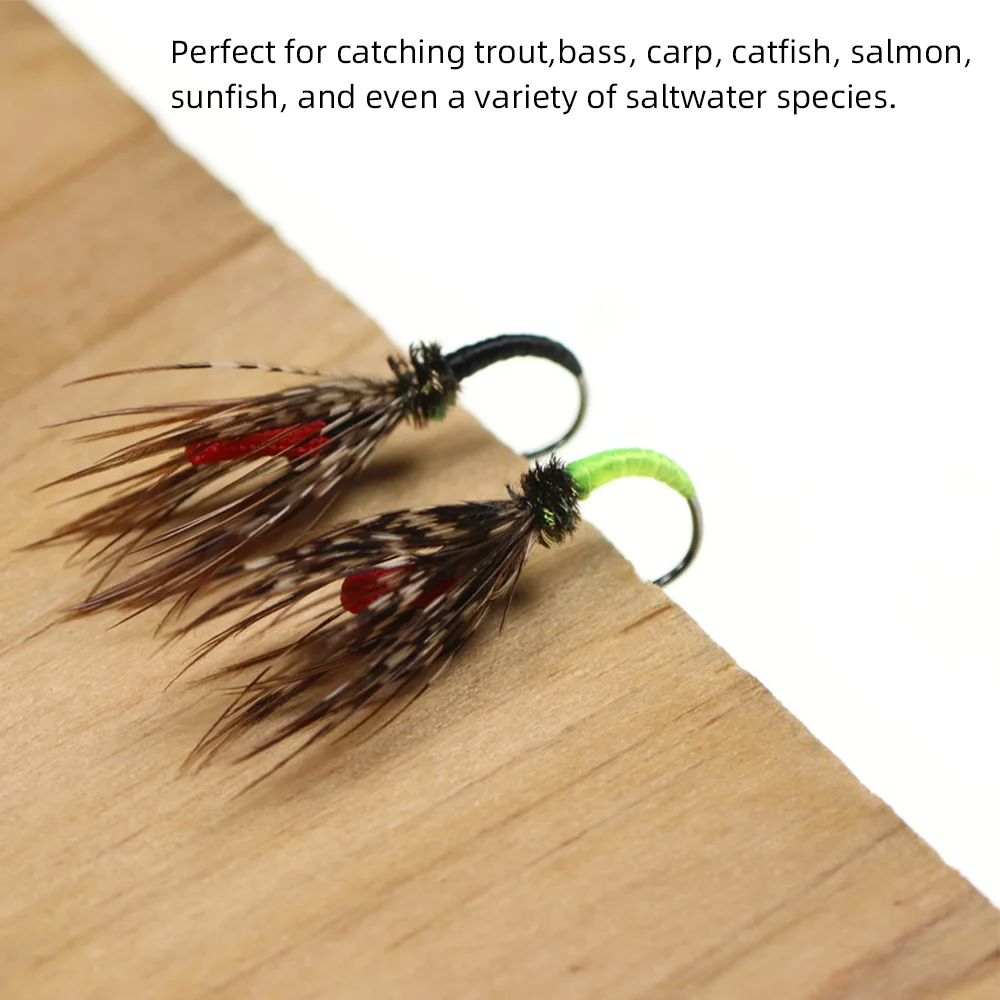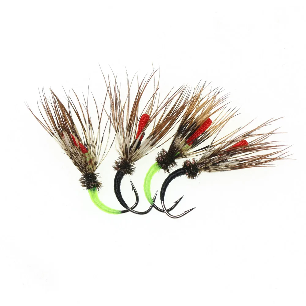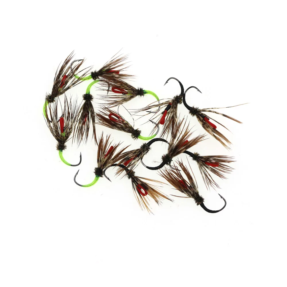 Wifreo 8 piezas#12 clásicos Tenkara Fly Grizzly Hackle anzuelo con púas mosca húmeda cebo Artificial para insectos trucha carpa salmón Señuelos de pesca