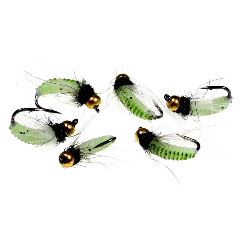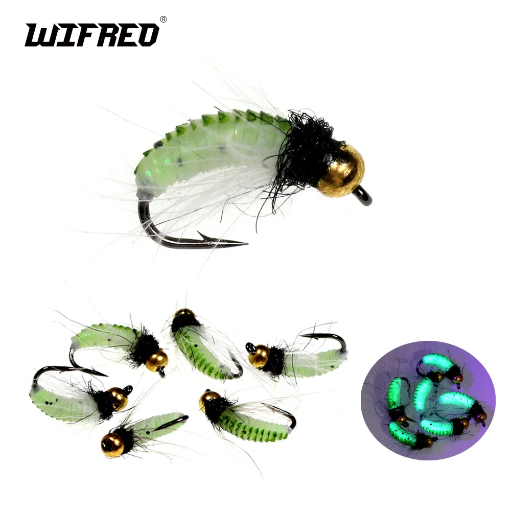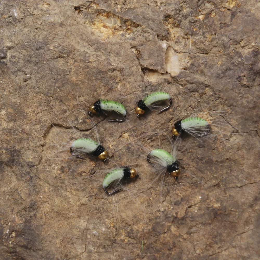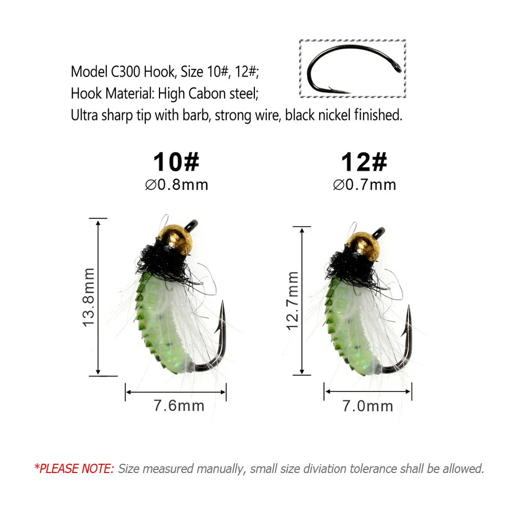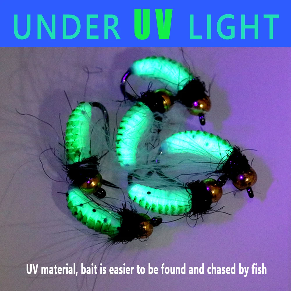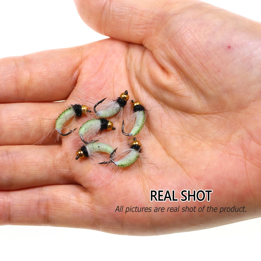 Wifreo 6PCS#10#12 CDC pluma Hackle ninfa Scud mosca UV cuentas de latón insecto húmedo gusano trucha pesca mosca cebo señuelo hundimiento rápido