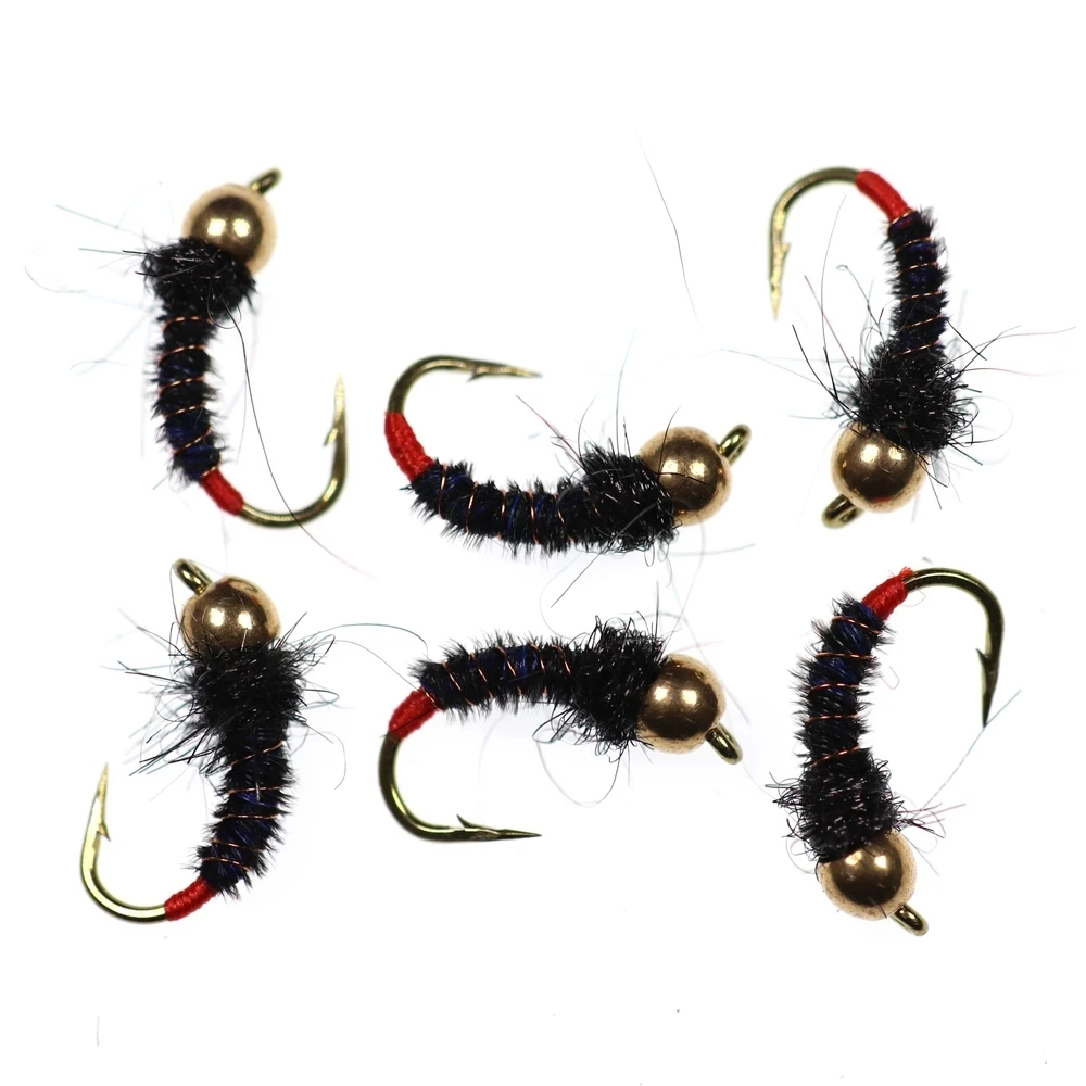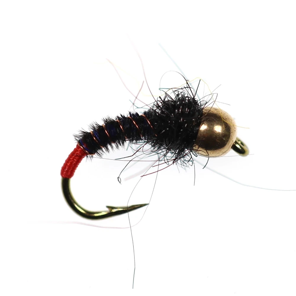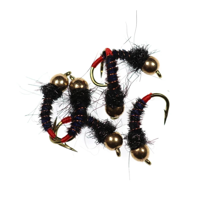 Caddis Cabeza de cuentas de latón metálico Ninfa moscas premium