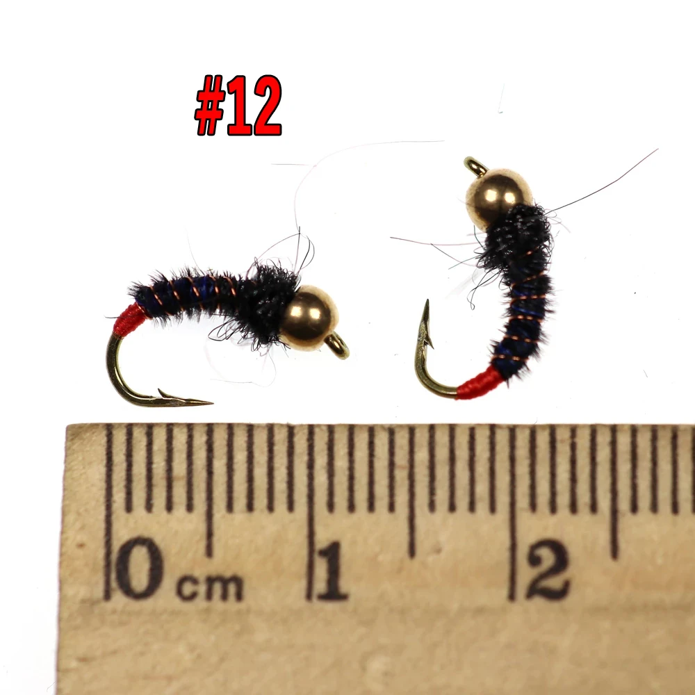 WIFREO 8PCS#12 anzuelos dorados, ninfa, moscas, anzuelos con cabeza de cuentas de latón metálico, señuelos de pesca con mosca