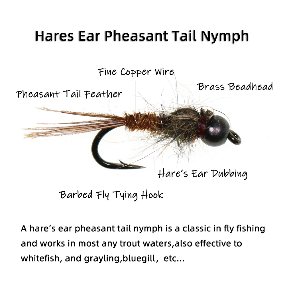 La ninfa de cola de faisão de la oreja de la leva es un clásico en la pesca con mosca y funciona en la mayoría de las aguas de truchas, también es eficaz para los peces blancos, el agarramiento, el moramilo, etc.