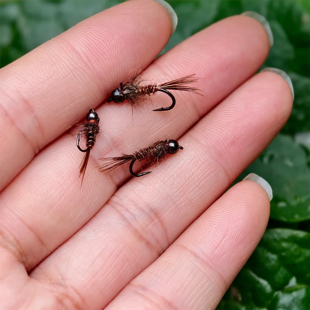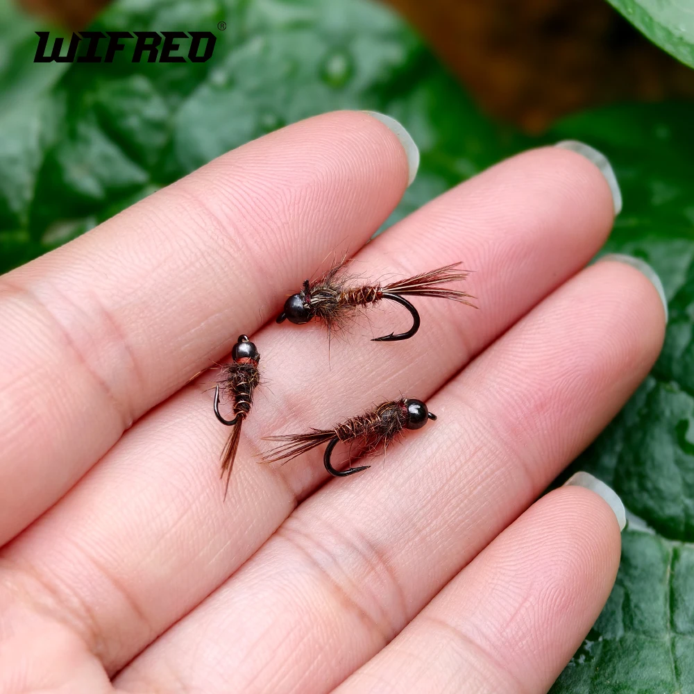 Wifreo 9PCS#14#16#Señuelo de ninfa con cola de faisán para oreja de Hare con cabeza de cuentas, cebo de pesca con mosca Artificial para trucha, pez blanco y pan