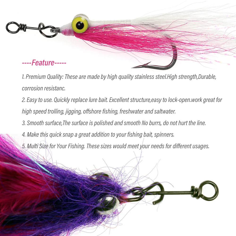 2. Fácil de usar. Reemplaza rápidamente el cebo señuelo. Excelente estructura, fácil de lock-open.work, ideal para curricán de alta velocidad, jigging, pesca en alta mar, agua dulce y salada.