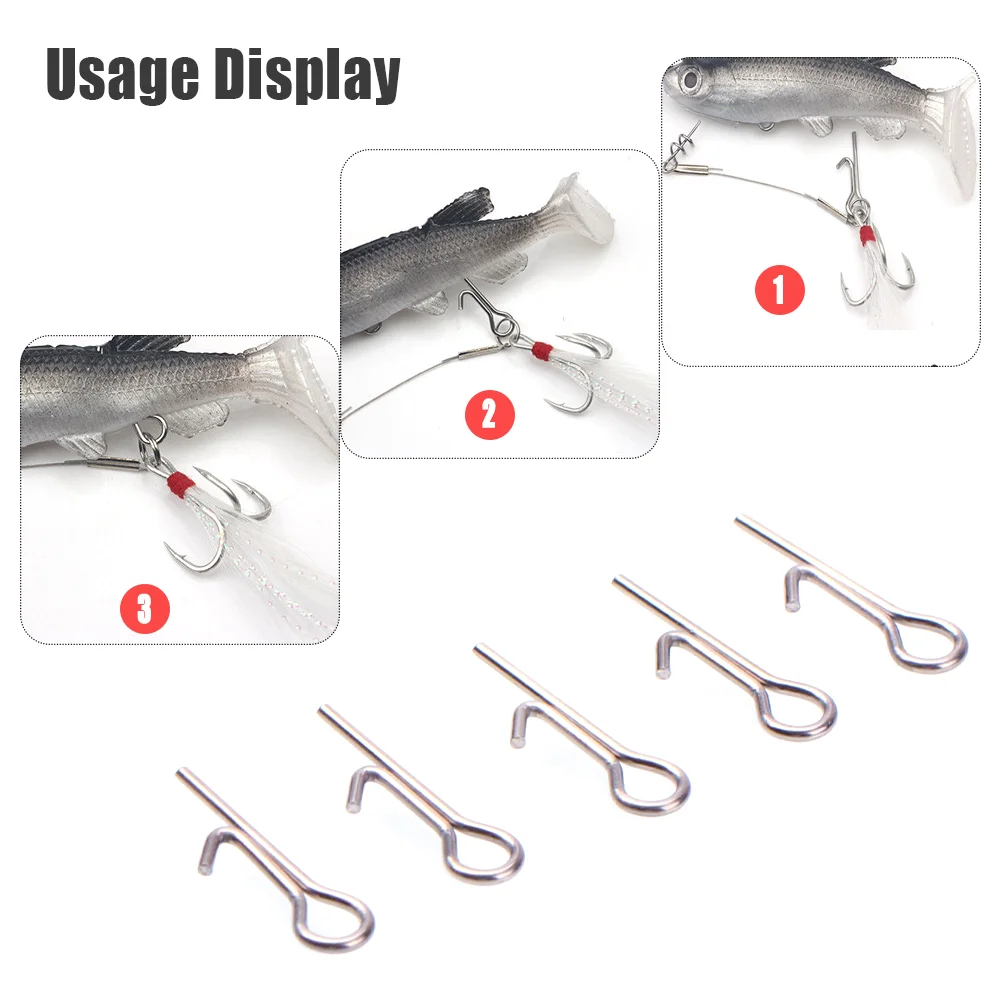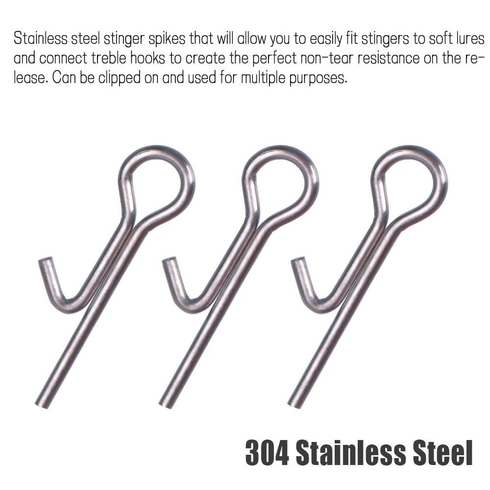 Púas de acero inoxidableQue le permitirá ajustar fácilmente los aguijones a los señuelos blandos y conectar los anzuelos triples para crear la resistencia perfecta sin desgarro en la liberación. Se puede recortar y utilizar para múltiples propósitos.