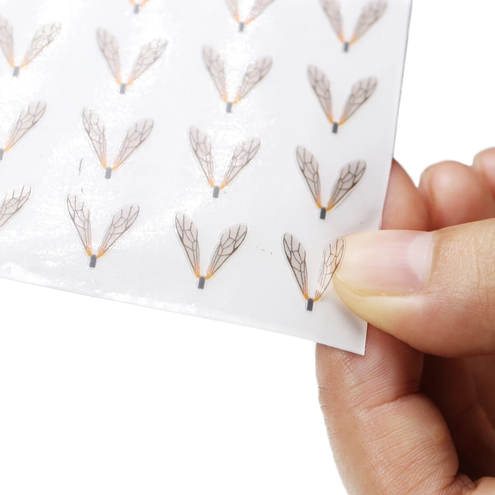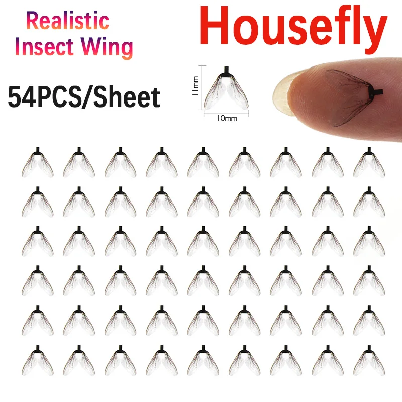 Estas alas de insectos son súper realistas y fáciles de usar. Material polivinílico híbrido de alta tecnología de calidad superior, flexible, transparente, impermeable, resistente a los rayos UV y respetuoso con el medio ambiente. Preformado, precortado y listo para usar, no adhesivo, simplemente quíteselos de la hoja de respaldo y haga moscas increíblemente realistas que desee.
