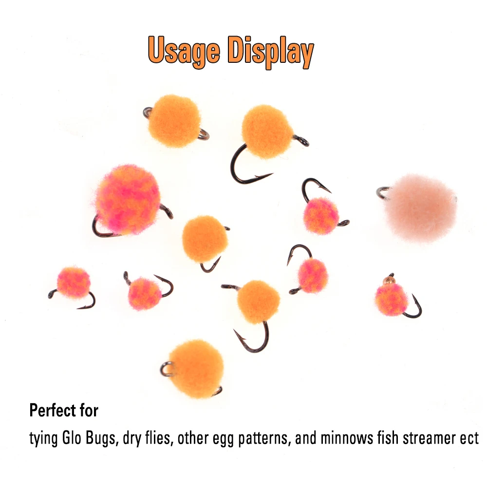 Aplicación: Perfecto para atar Glo Bugs, moscas secas, otros patrones de huevos y transbordadores de peces para pececillos, etc.