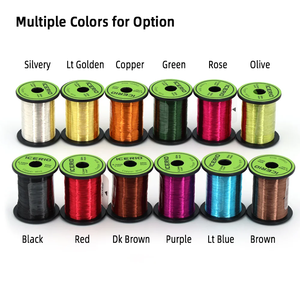 Wifreo 0,1mm 60M alambre de cobre hilo de Metal ultrafino Material para atado de moscas para ninfas de larvas molidas Señuelos de pesca de trucha con mosca seca/humedecida