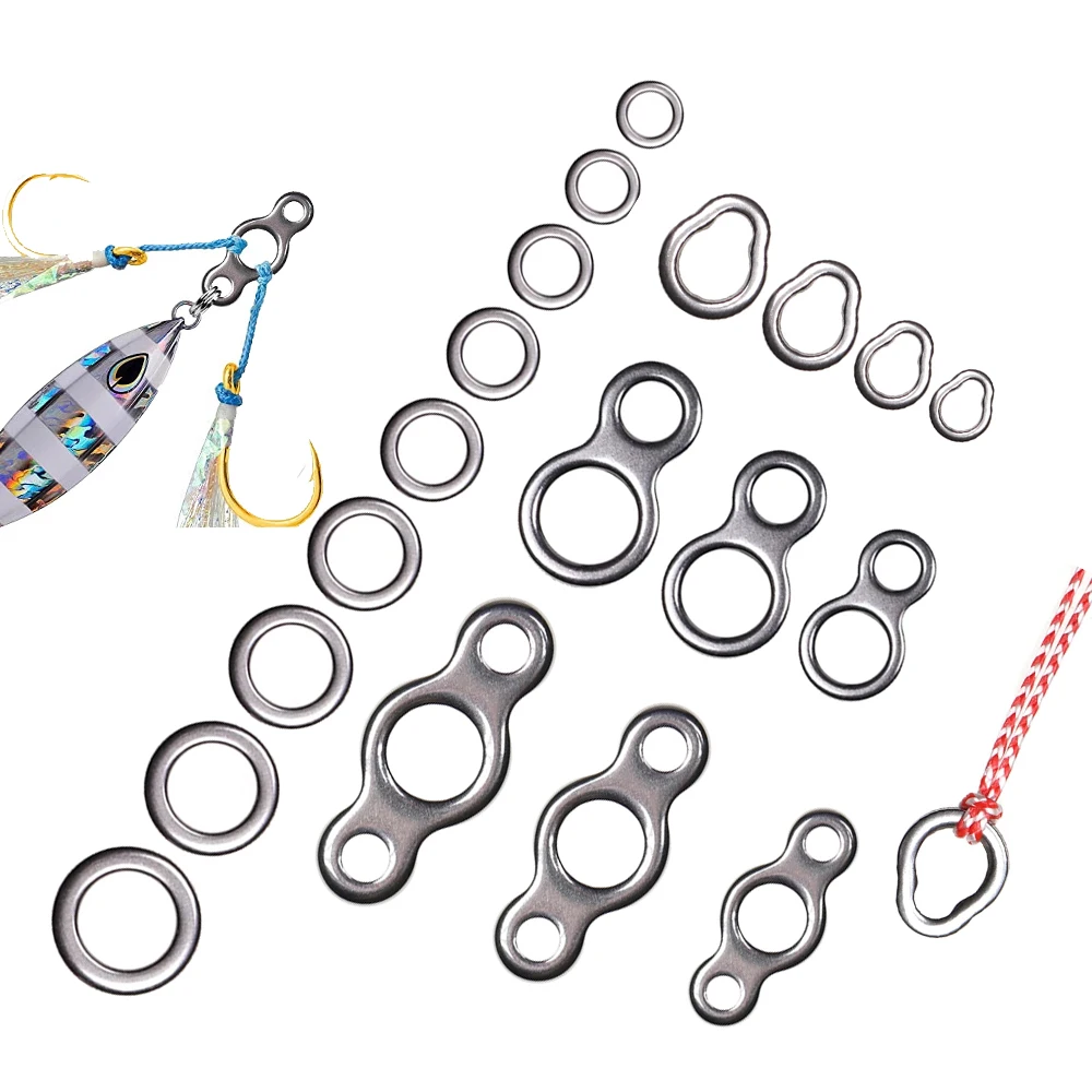 Wifreo 20 piezas de anillos sólidos de pesca de acero inoxidable, anzuelo de asistencia de 8 formas, plantilla de señuelo, conector de Terminal de línea, accesorio de pesca de agua dulce y salada