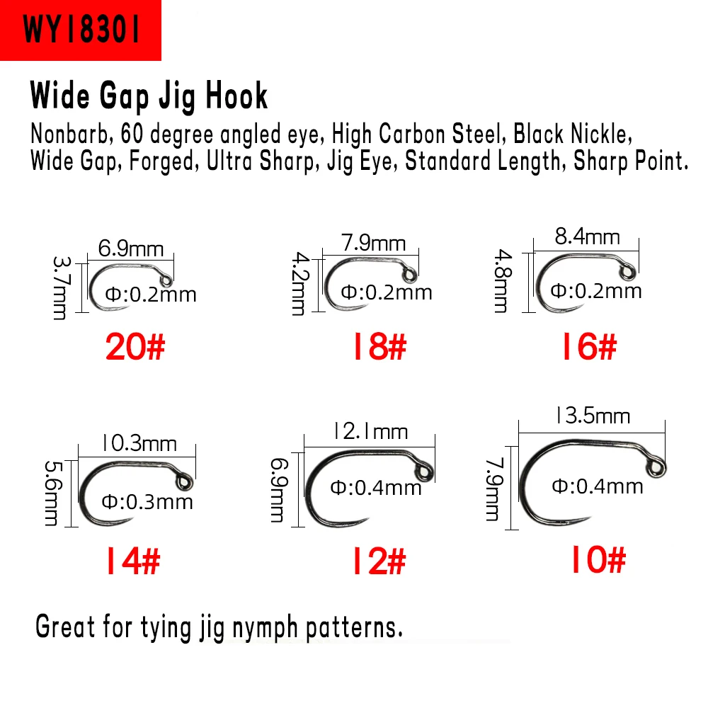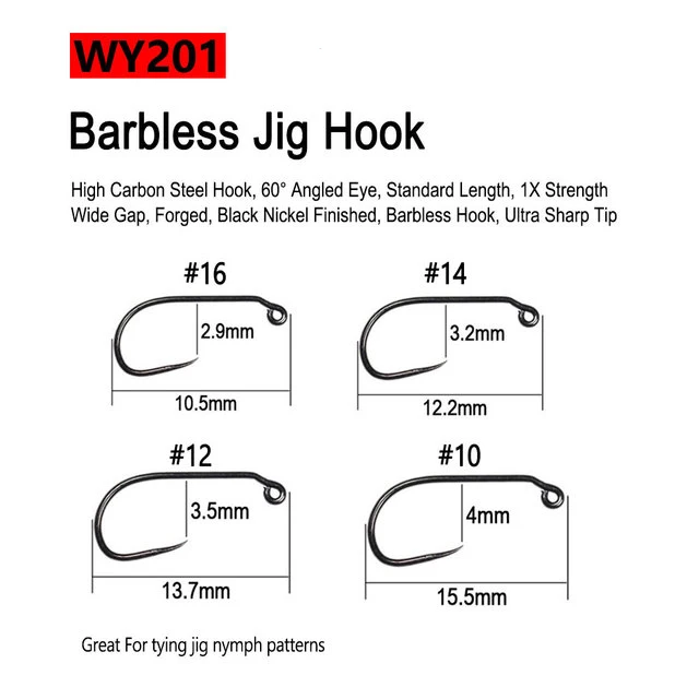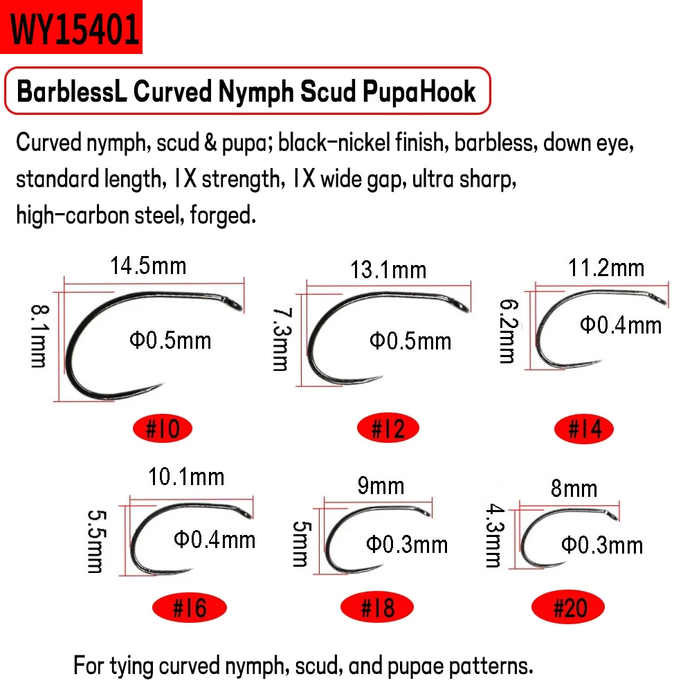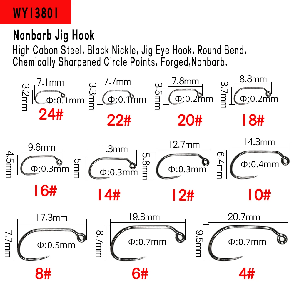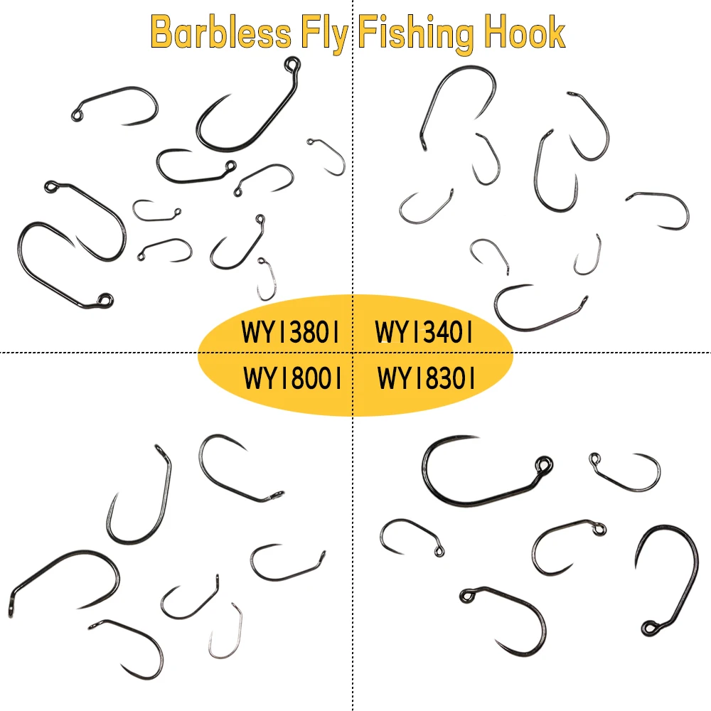 WIFREO 100, anzuelo para atar moscas sin púas, acero de alto carbono, apto para peces, pesca con mosca, seco, húmedo, ninfa y Camarón, caddis, pupa, anzuelos