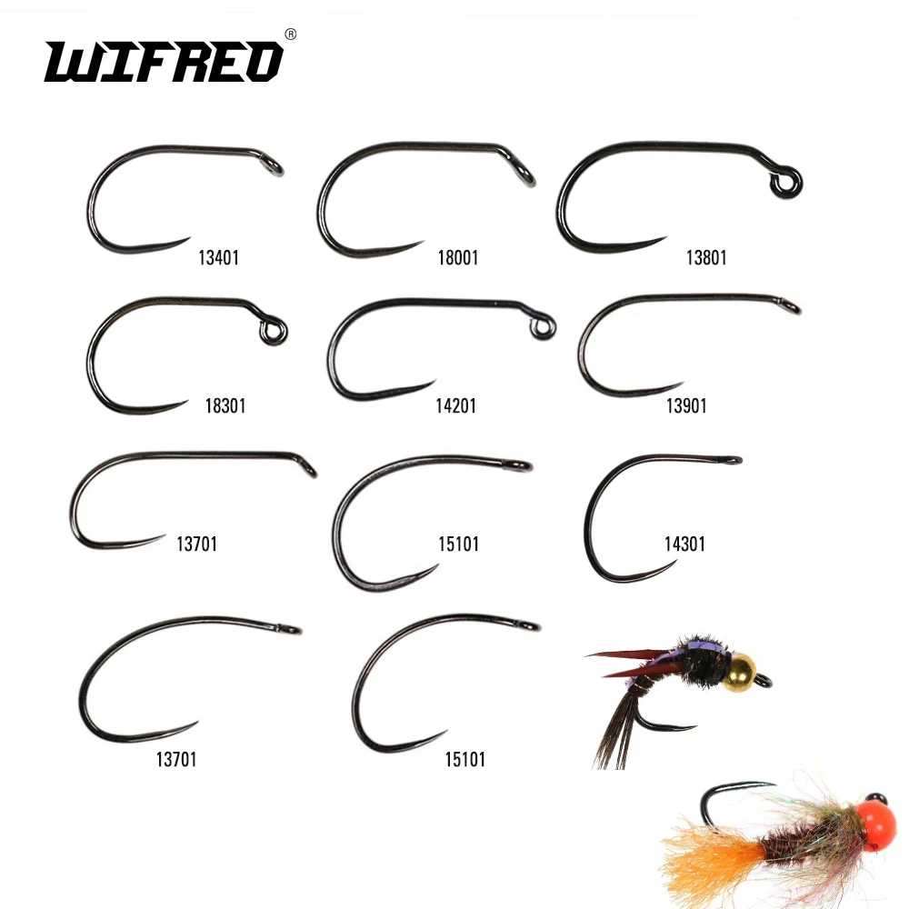 WIFREO 100, anzuelo para atar moscas sin púas, acero de alto carbono, apto para peces, pesca con mosca, seco, húmedo, ninfa y Camarón, caddis, pupa, anzuelos