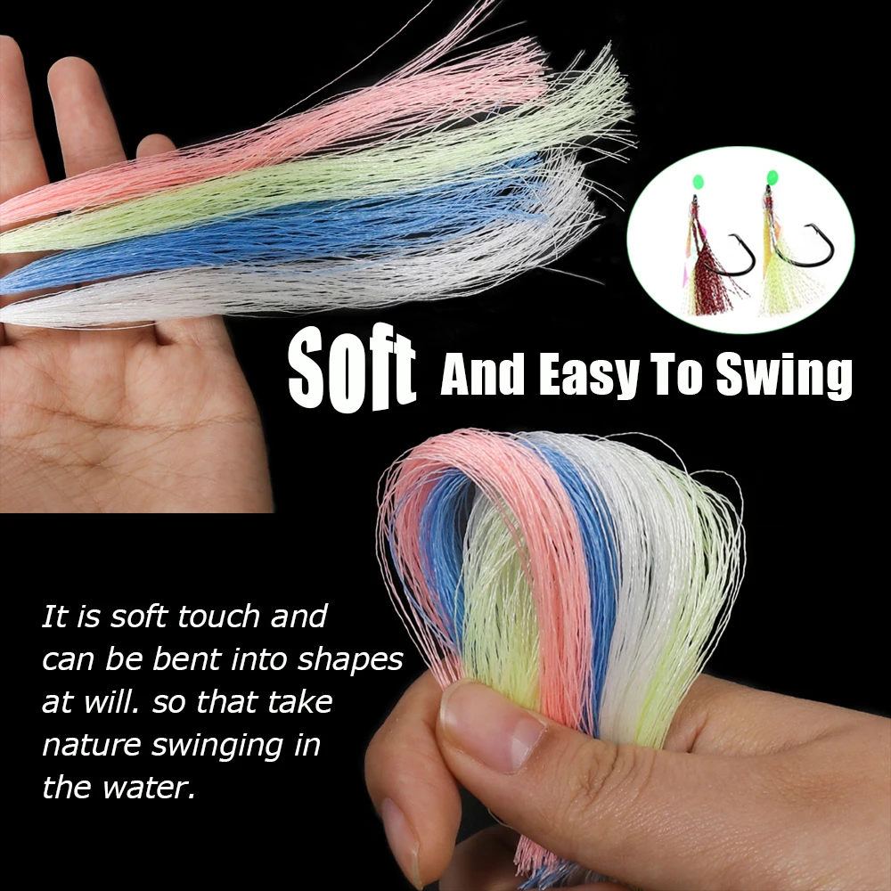 Wifreo 4 paquetes Twisted Tinsel Assist Hook Sabiki Rig Glow Fiber Fly Tying Threads para Streamer Flies Pesca de agua salada Señuelo de trucha
