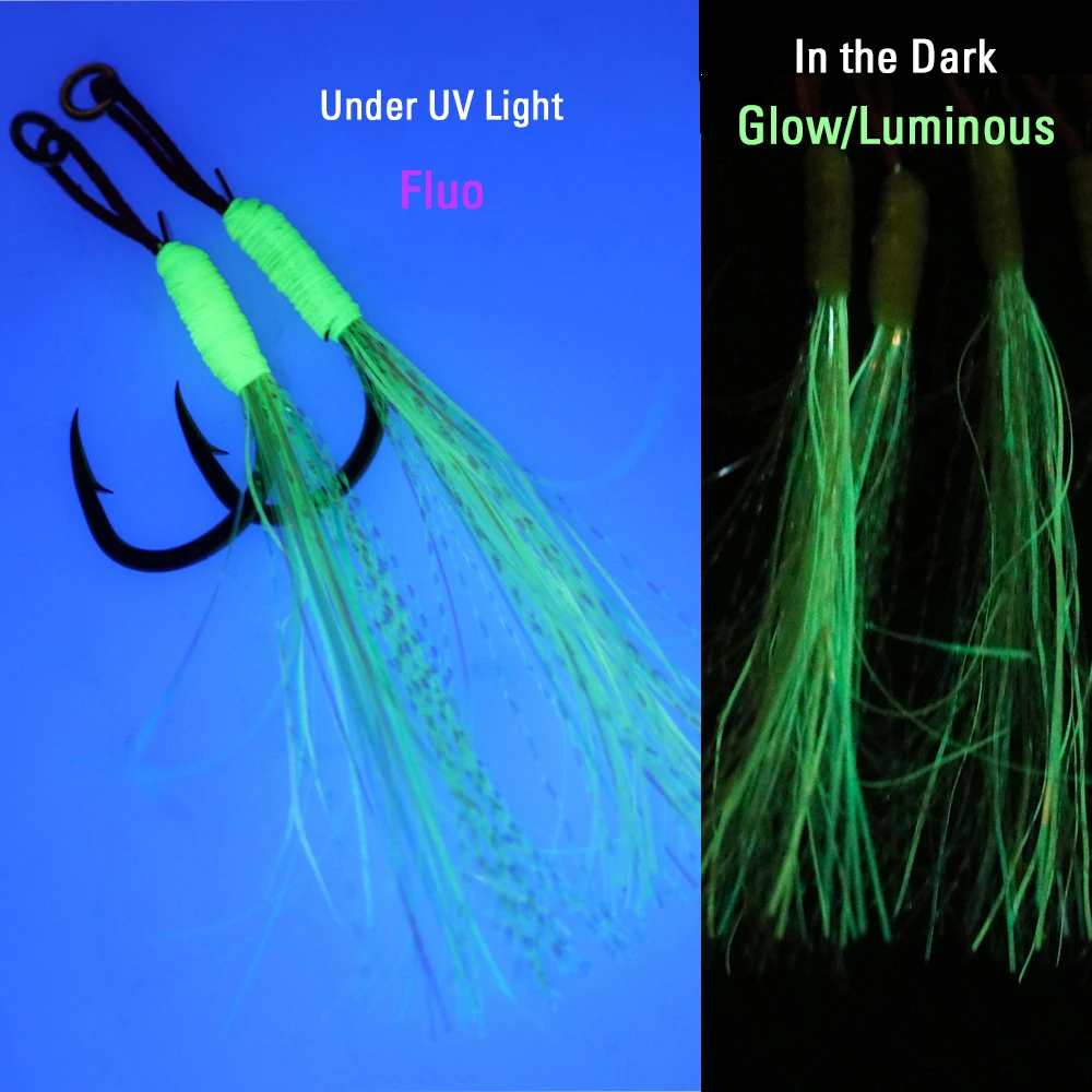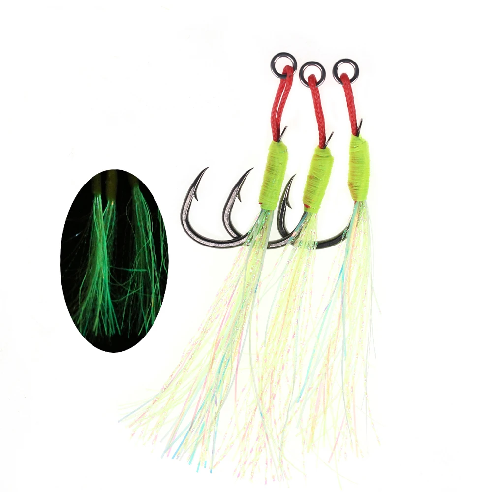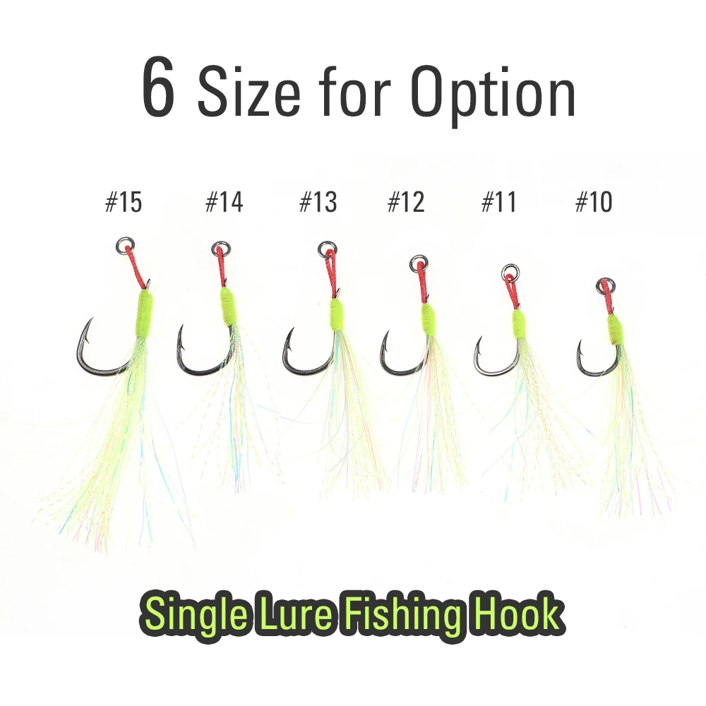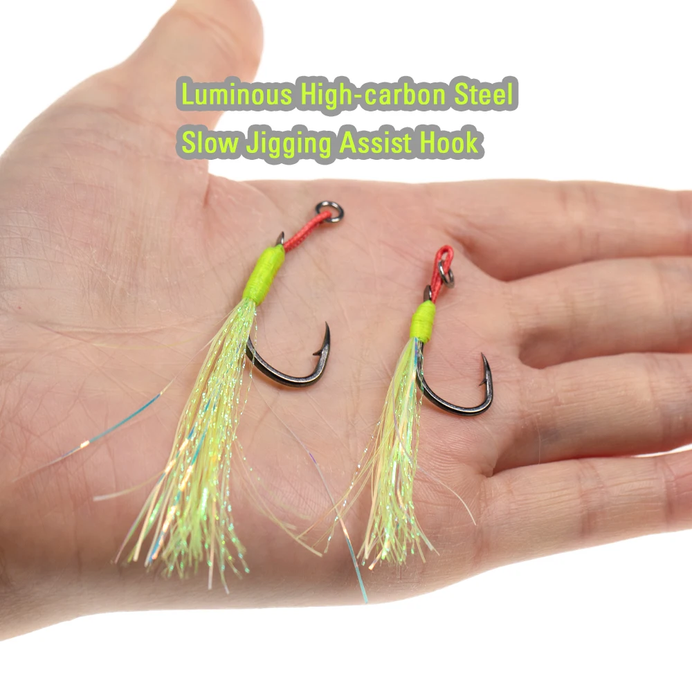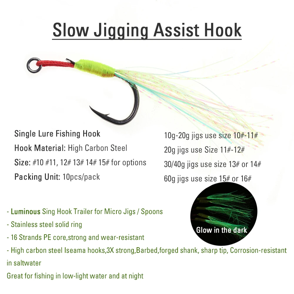Wifreo, anzuelo de asistencia de jigging lento de acero de alto carbono luminoso de 10, anzuelo de pesca con señuelo único, aparejos para pesca de agua salada