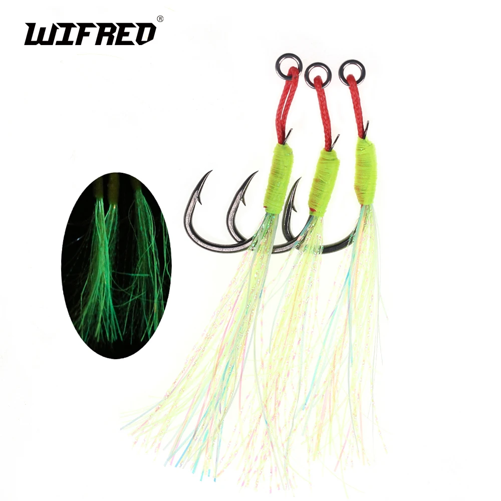 Wifreo, anzuelo de asistencia de jigging lento de acero de alto carbono luminoso de 10, anzuelo de pesca con señuelo único, aparejos para pesca de agua salada