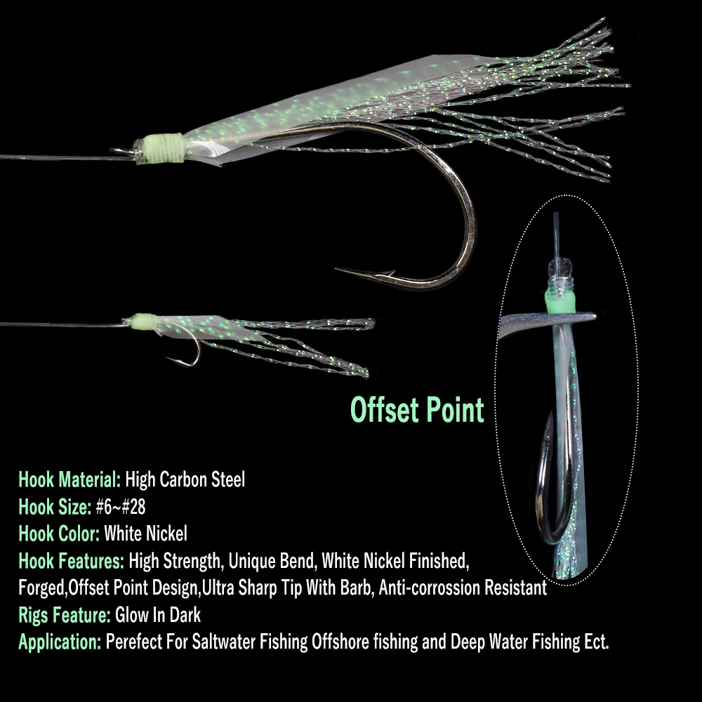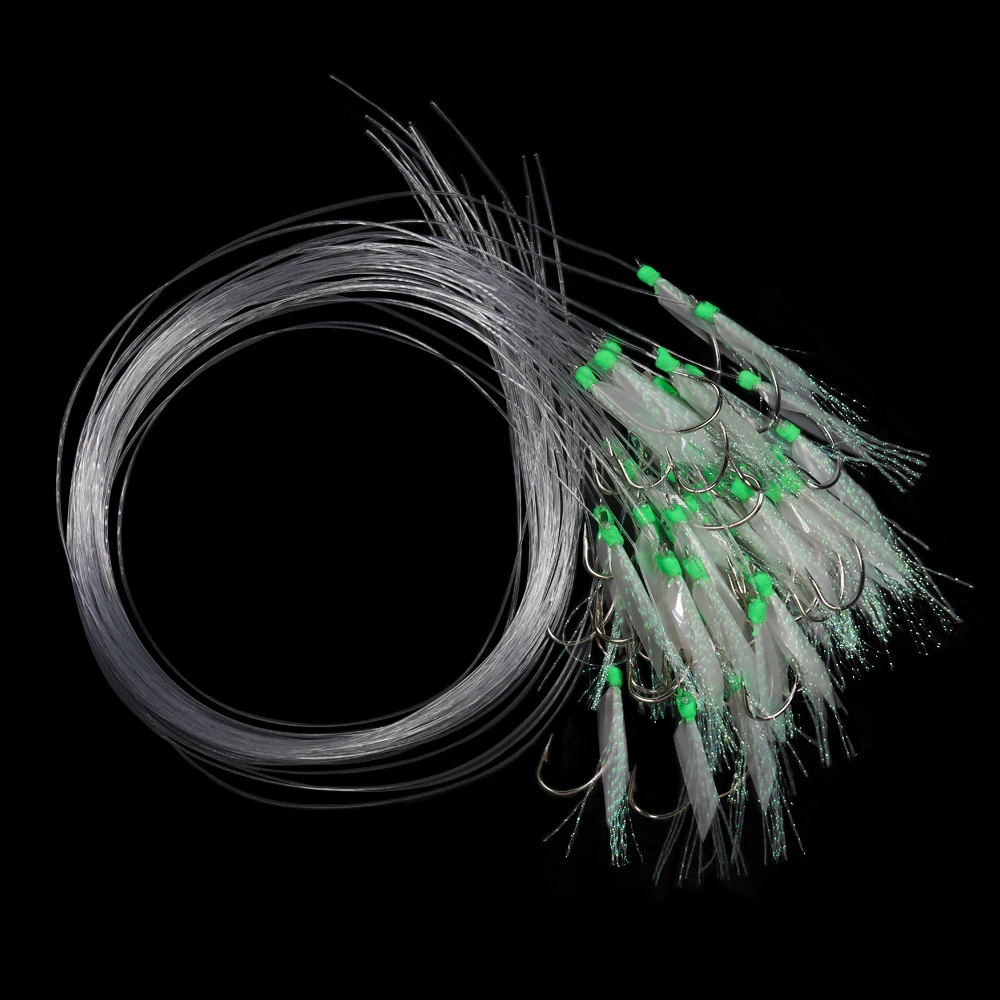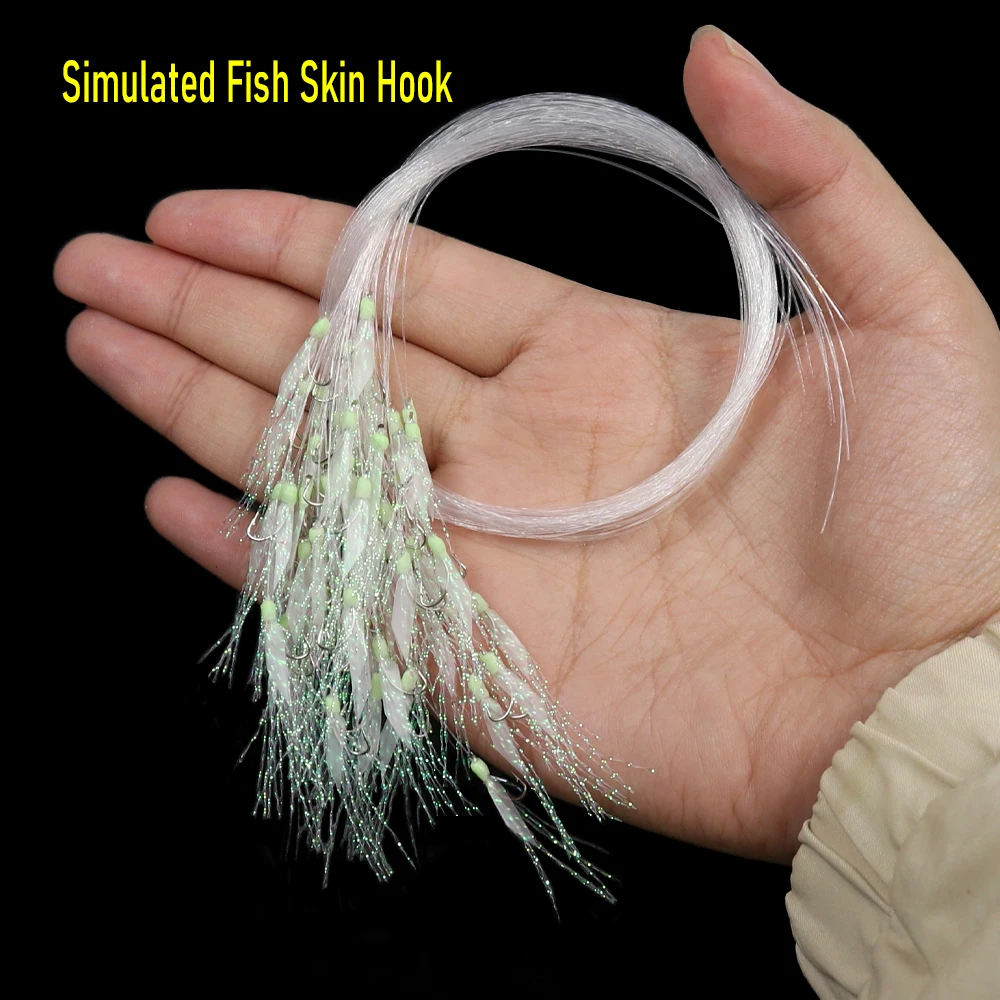 WIFREO, 50 Uds., anzuelo de Pesca de piel de pez simulado luminoso con línea de Pesca, anzuelos de sublínea Sabiki Rig, señuelo de piel de pez de agua salada, accesorios para aparejos de Pesca