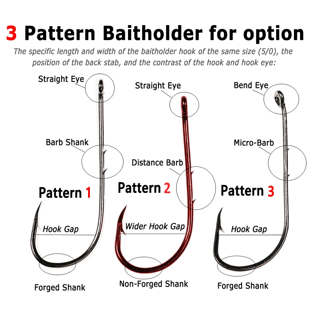 Wifreo 20/50 anzuelo de púas, anzuelo de acero al carbono duro, anzuelos de pesca, gusano Garfish, soporte de cebo de besugo, blanco, níquel, rojo, 1 #-5l0 #