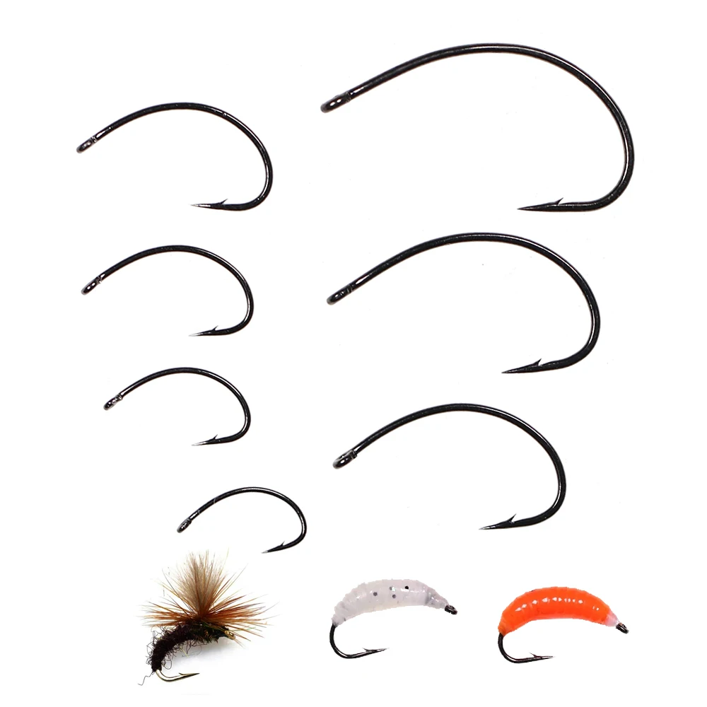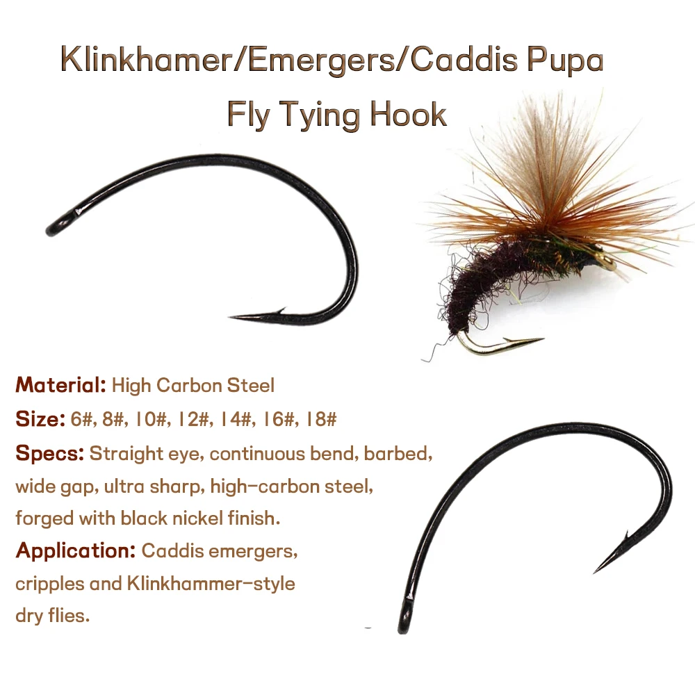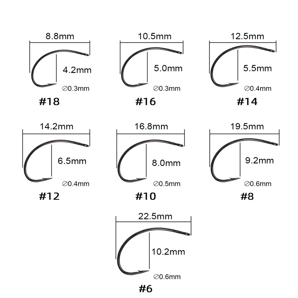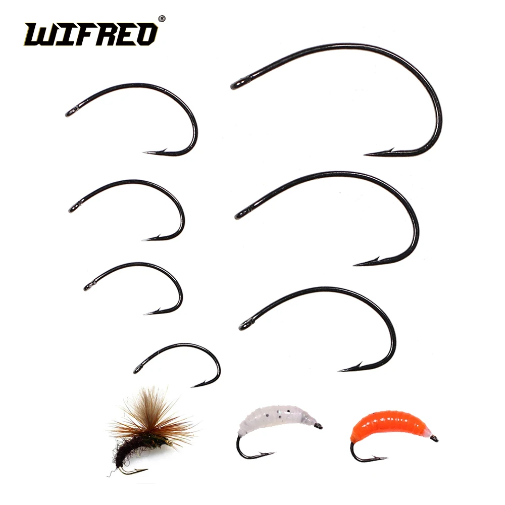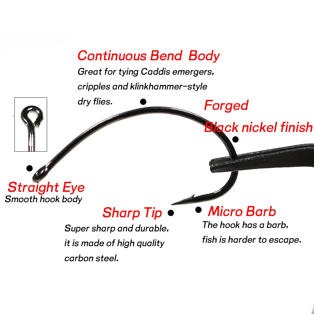 WIFREO 50pc Wide Gap Barbed Fishing Fly Tying Hook Straight Eye Continuous Bend Fishing Hooks Caddis Emergers Dry Fly Tying Hook