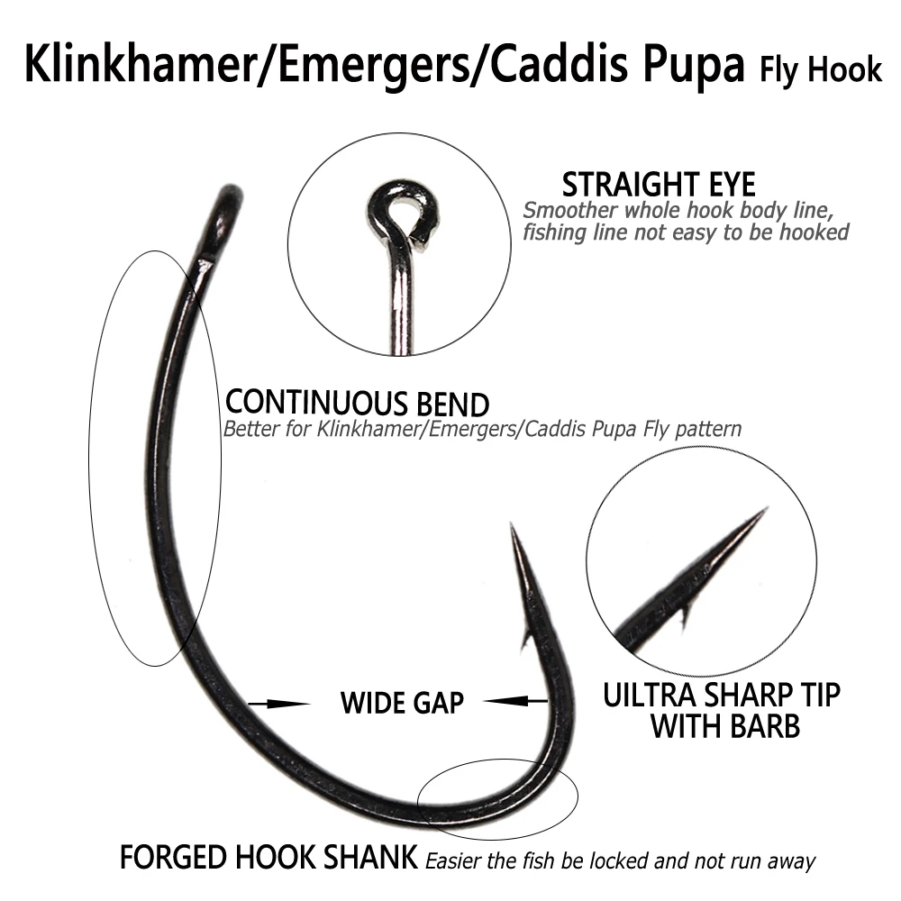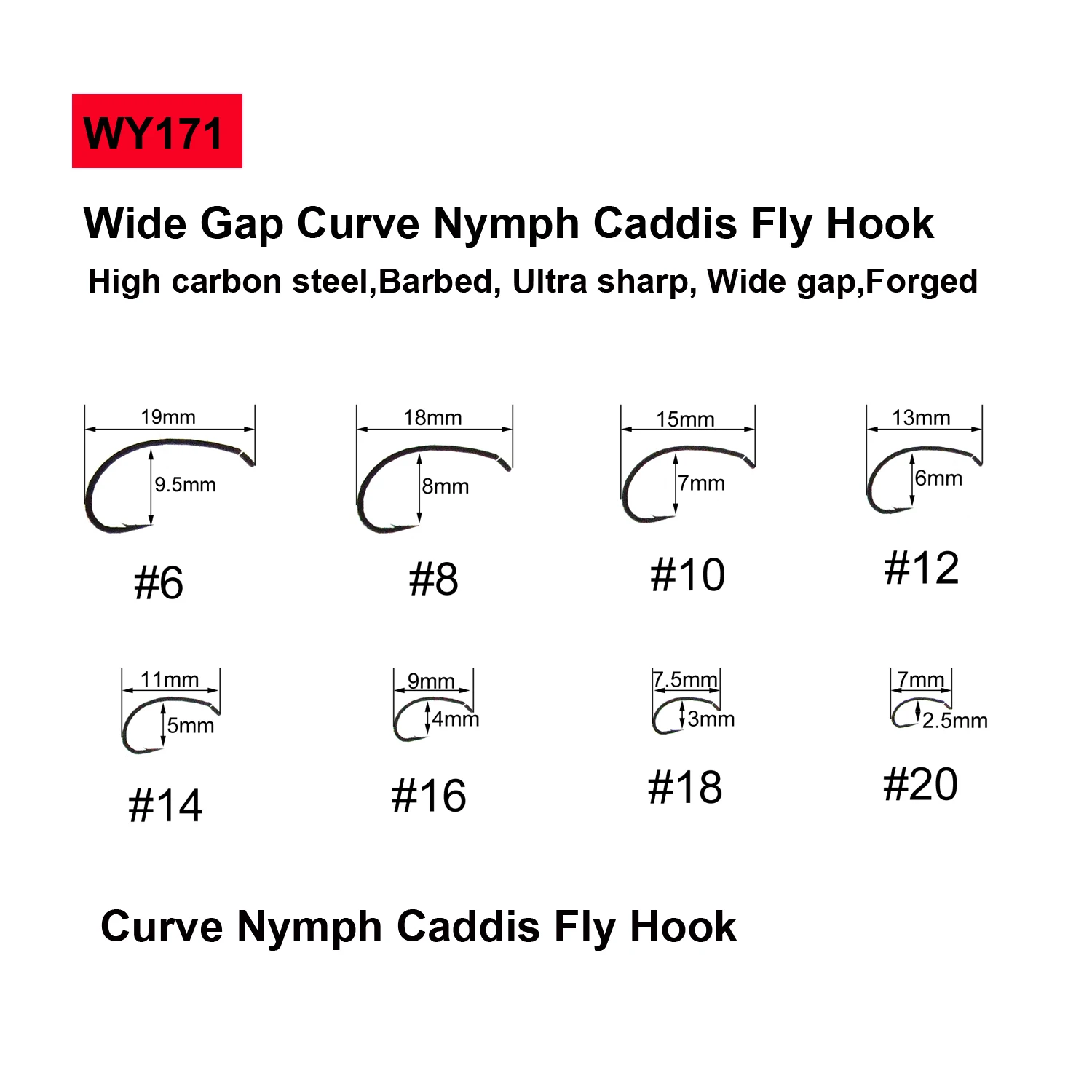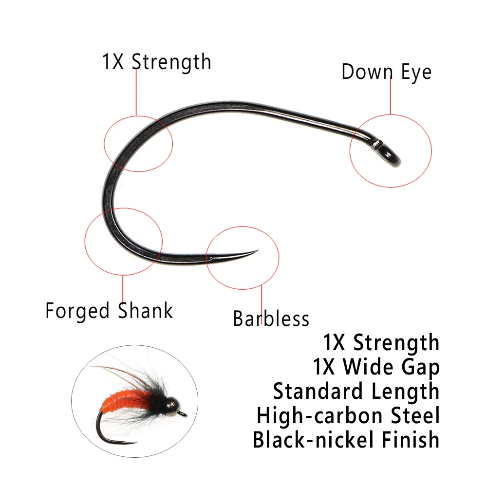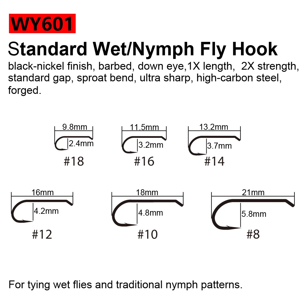 Wifreo 100, de púas anzuelo de pesca con mosca/sin púas, anzuelos para moscas Nymph Scud Caddis, anzuelos para moscas secas, anzuelo para atar moscas húmedas